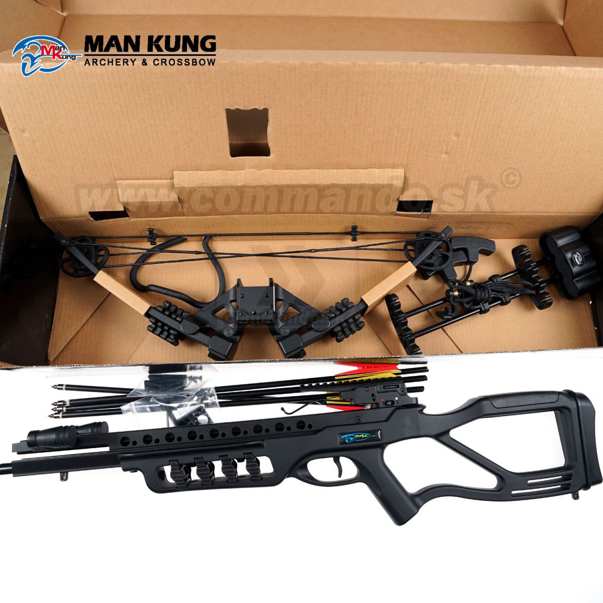 185 Lbs - 370 Fps, špičková kladková kuša z produkcie renomovaného výrobcu MAN KUNG v Taiwane. Rýchlosť vystreleného šípu je cca 113 m/s. Vyznačuje sa pokročilým prevedením ťažného systému a CNC obrábanými kladkami a vodiacou lištou.