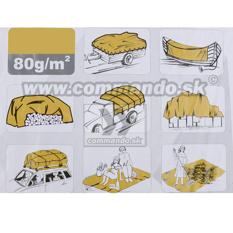 Možnosť použitia je univerzálna - ako celta, plachta, prikrývka proti dažďu, slnečná clona, stanový dielec alebo ako bežná podložka pri stanovačke, rybačke, turistike a podobne.