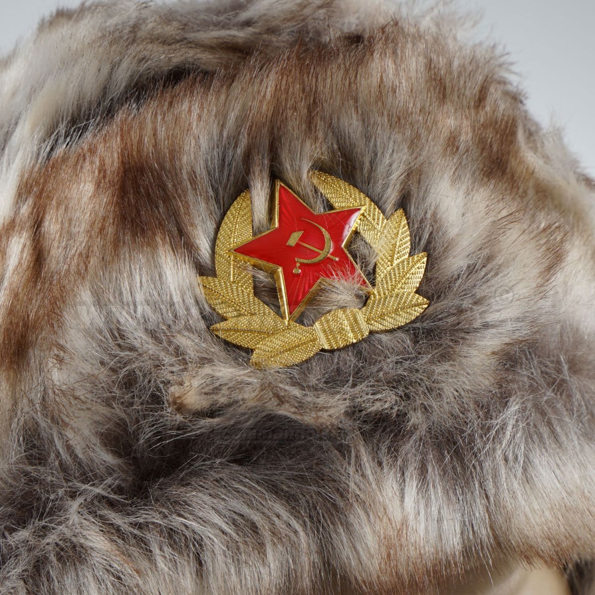Ruský vzor, spomienka na staré časy CCCP. Zimná čiapka tzv. baranica. Kožušina nepochádza zo zvierat. je to imitácia vyrobená zo syntetického materiálu. Na prevysoch na ušiach sú šnúrky, vďaka ktorým sa ta čiapka zaviazať pod krkom, alebo naopak klasický ušiankovo nad hlavu. Nejedná sa o originál vojenskú ruskú čiapku.