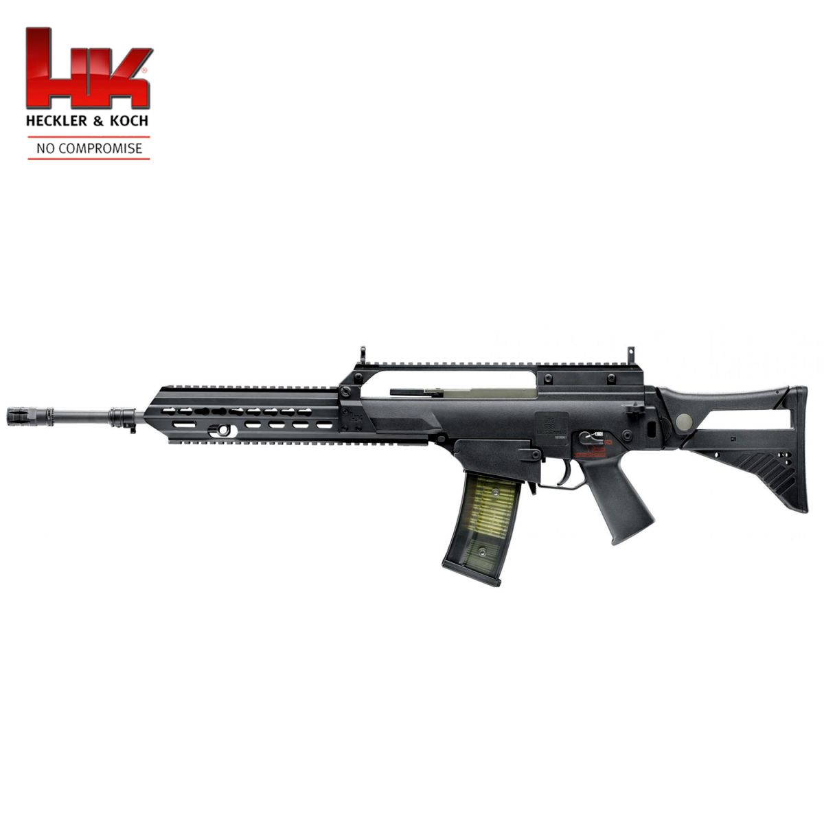 Výborné autentické prevedenie najdlhšej z trojice H&K G36 aj s firemným označením na tele zbrani. Špecialitka ktorá poteší každého, kto je G36 "positive". Špeciálna posuvná, sklápacia a výsuvná pažba. Vyklopné zadné aj predné mieridlá. Replika zbrane je vyrobená pre firmu Umarex, ktorá je nositeľom licencie Heckler&Koch pre airsoft.