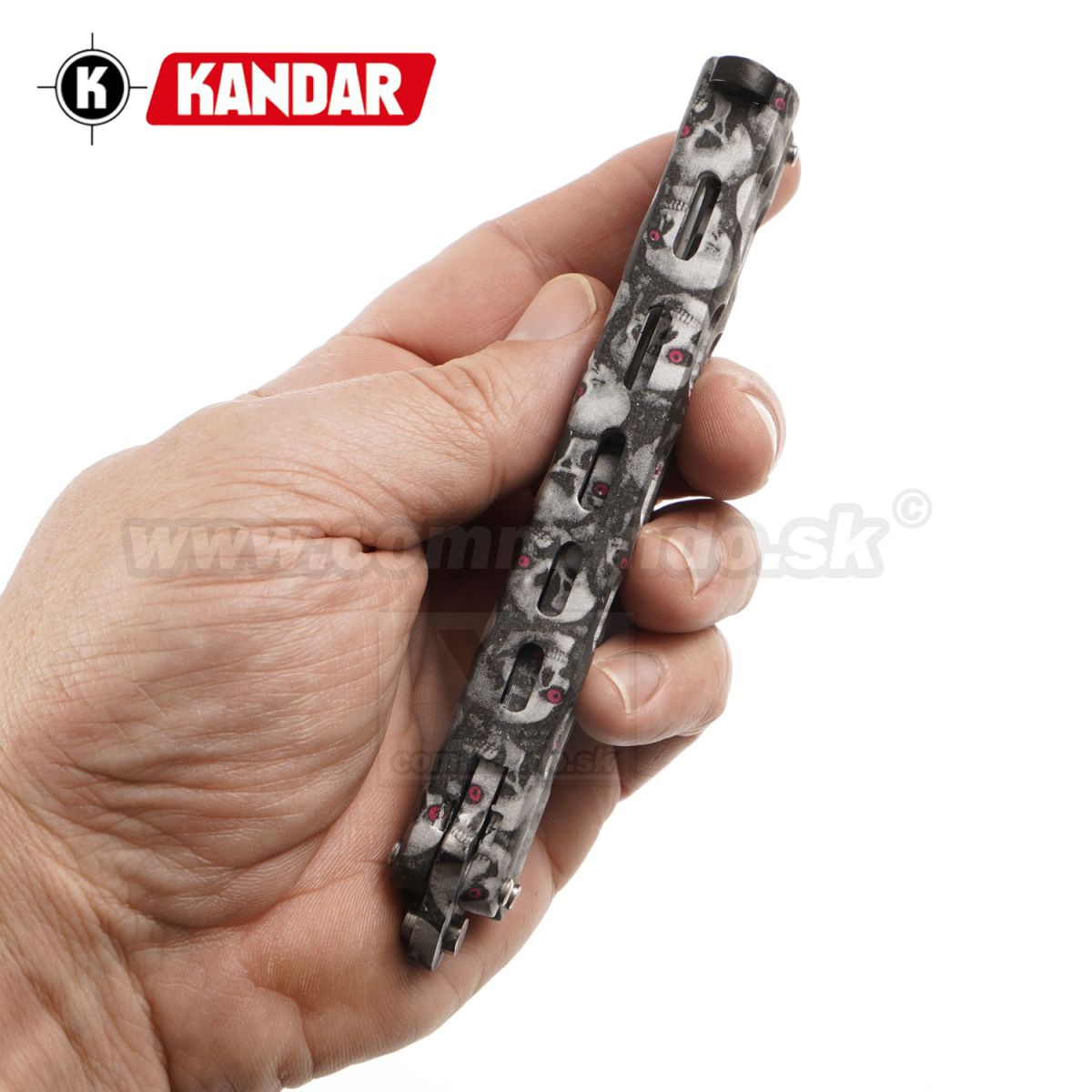 Kandar® N291 Balisong - výborná kvalita motýlika v sivej farbe s lebkami.