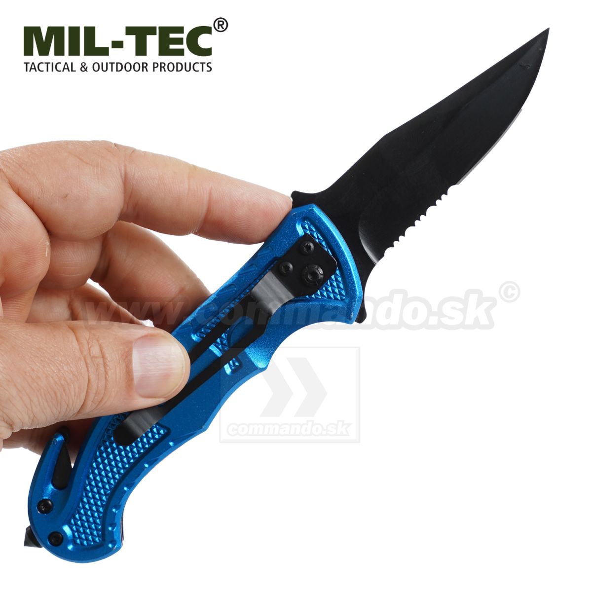 Kvalitné prevedenie multifunkčného zatváracieho noža od renomovanej firmy STURM Mil-Tec Germany. Nôž je vhodný pre každodenné použitie, na turistiku, pre hasičov a záchranárov, či použitie v aute v kritickej situácii. Kvalitná čepeľ je vyhotovená z nehrdzavejúcej ocele 420 - HRC 50-53 a doplnená o pilové zuby, ktorými prepílite väčšinu tenších odolnejších materiálov (látka, tenké konáriky, kosti, ľad, mäkký plast, lano, popruhy atď.) Otváranie noža je jednoduché a plynulé vďaka systému spring assist - pootvorenie ukazovákom a celkové otvorenie dokončí pružina. Otvorený nôž je istený poistkou linner lock. Rukoväť je hliníková v strede so záchranárskym emblémom. Jej súčasťou je aj čepeľ na prerezávanie bezpečnostných pásov a hrot na rozbíjanie skla. Oporu pri úchope zabespečujú priehlbiny pre palec aj ukazovák. Nôž je možné upevniť na opasok, tašku alebo batoh kovovým klipom. Nôž je dodávaný bez puzdra.
