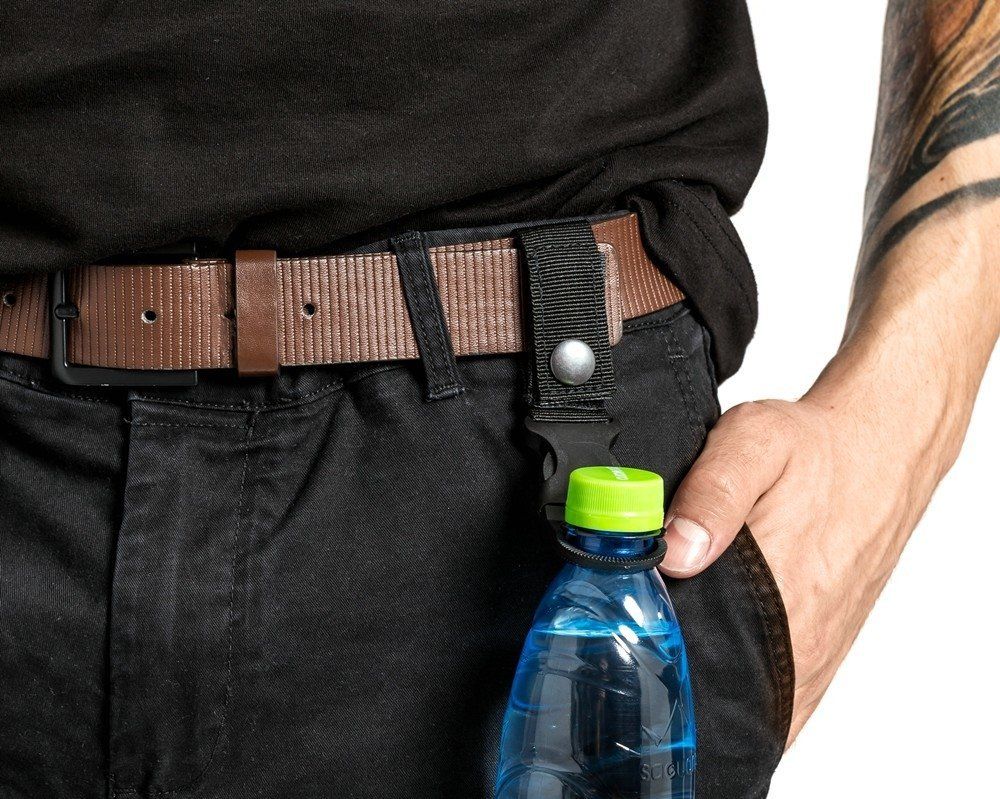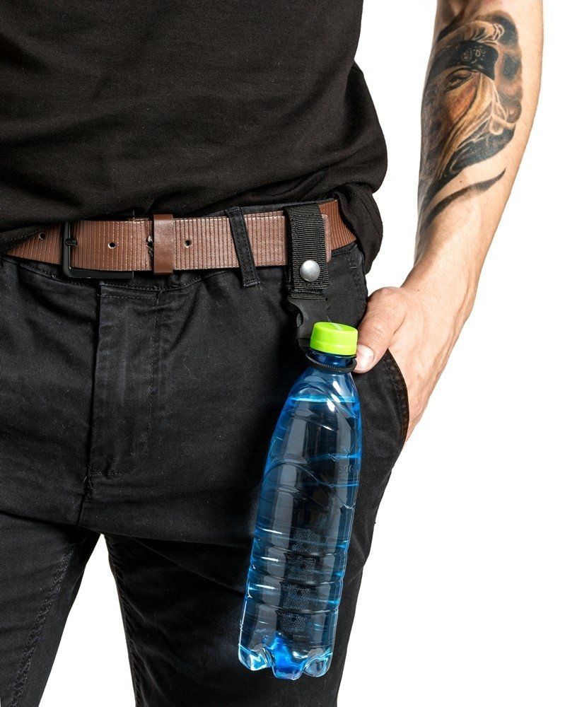 Praktický držiak na fľašu, ktorý sa bude perfektne hodiť na akékoľvek outdoor, výlety a aj na prechádzky mestom. Výborný tiež na poznávacie zájazdy, voda pri ruke a voľné ruky. Ľahko ho pripevníte na pútko na opasok, opasok alebo batoh, zapínanie je kompatibilné so systémom MOLLE. Vďaka držiaku nepotrebujeme v batohu alebo taške žiadny ďalší priestor, alebo batoh si ani nemusíme vziať vôbec, pretože fľaša bude vždy po ruke, a naše ruky budú voľné.