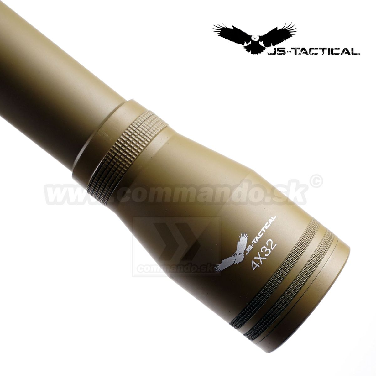 Puškohľad JS Tactical 4x32 Scope TAN Mil Dot + krúžky 21/22mm