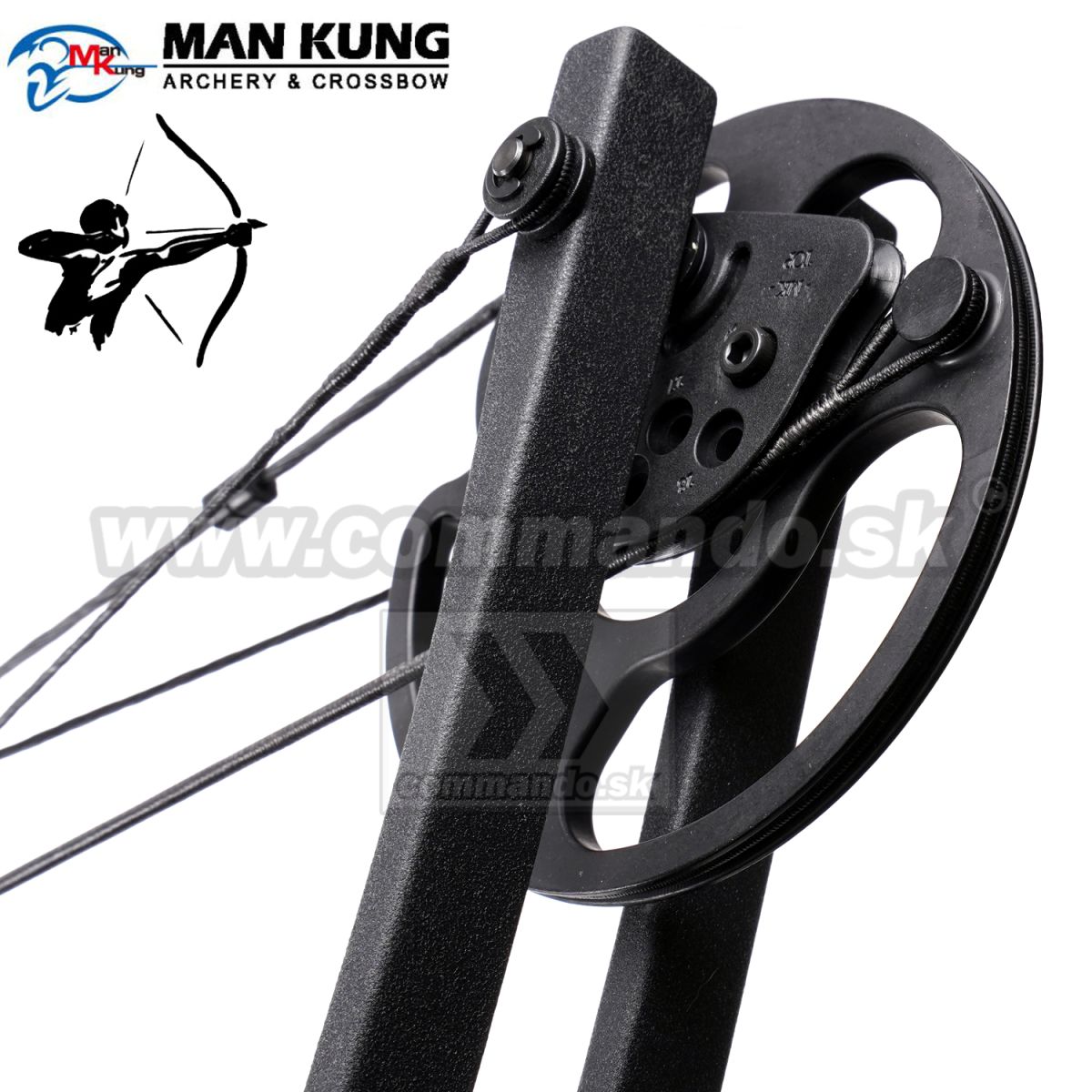 Luk pre skúsených lukostrelcov. Ideálny pre zábavnu a športovú streľbu na terč , ale aj na lov v súkromných oborách. Kladkový systém luku umožňuje presnejšiu streľbu a nie je tak náročný náťah tetivy, ako pri reflexných lukoch. Je len potrebné zistiť a vyskúšať aký správny náťah je pre Vás vhodný. Rúčka luku je vyrobená z hliníku ktorá výborne sedí v ruke. Kompozitné ramená vo farbe čiernej a telo luku maskáčovom prevedení.  Naťahová sila a dĺžka náťahu sú veľmi ľahko nastaviteľné. Súčasťou je fiber optický zameriavač, vypúšťač šípov, 2 duralové 30" šípy a vosk na tetivu.