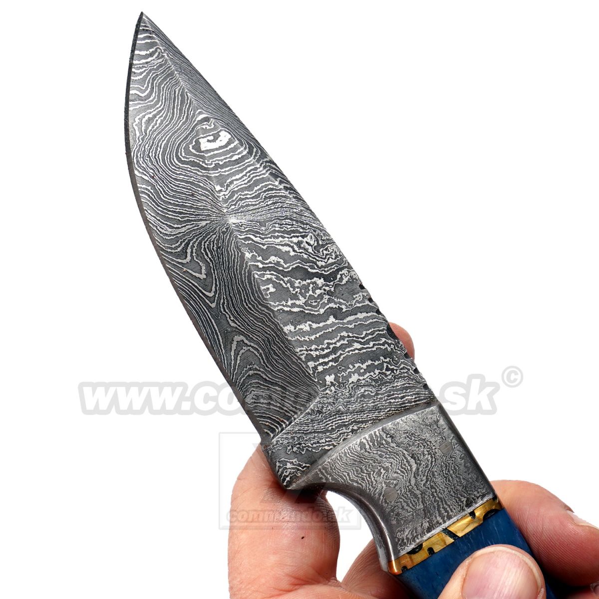 Damaškový nôž Blue Bone s koženým puzdrom 32567 Damascus