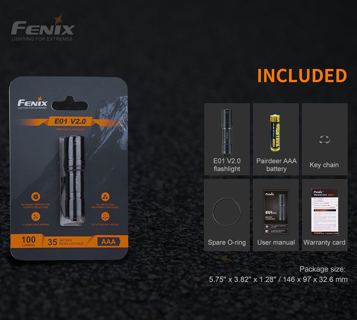 Druhá generácia obľúbenej mini baterky Fenix E01 V2.0 ponúka tri režimy výkonu so svetelným tokom až 100 lúmenov (ANSI). Vďaka minimálnym rozmerom je ideálnym zástupcom kategórie EDC (Every Day Carry), možno ju nosiť stále pri sebe, či už vo vrecku, na kľúčoch alebo v peňaženke. Baterka nie je oveľa väčšia ako mikrotužková AAA batéria, z ktorej je napájaná. Samozrejmosťou je vysoká kvalita prevedenia, odolnosť a vodotesnosť. Ultratenký kolimátor vytvára široký svetelný kužeľ s dosvitom až 35 metrov. Vďaka svojim vlastnostiam je predurčená slúžiť ako malý spoľahlivý spoločník, ktorý je vždy po ruke. Tento užitočný darček vždy poteší.
