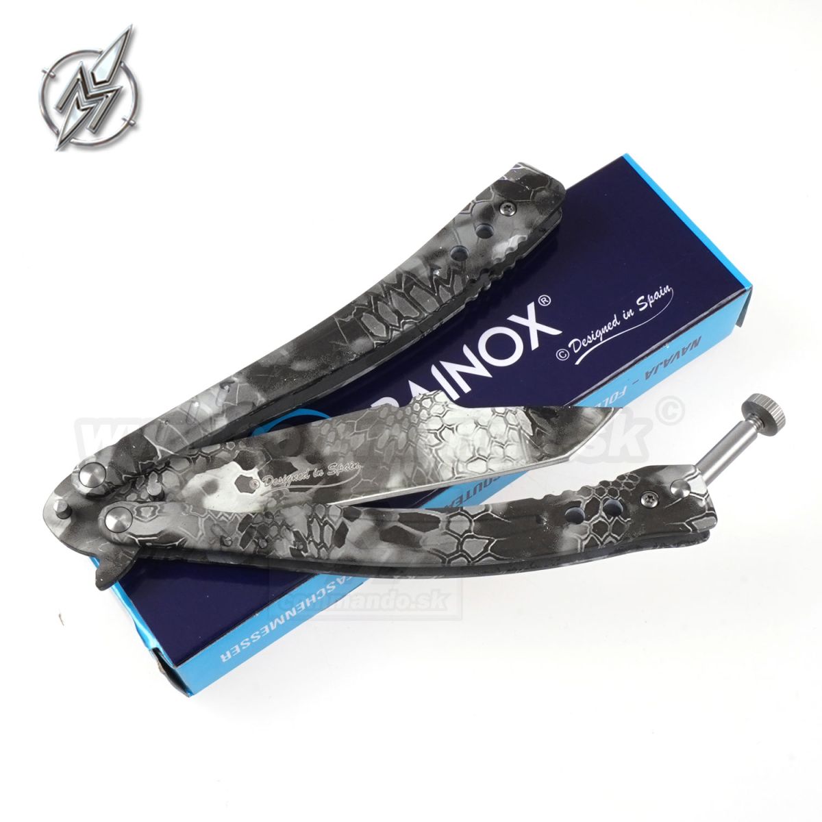 Motýlik Balisong N57 ML maskáčový zatvárací nôž Kandar®
