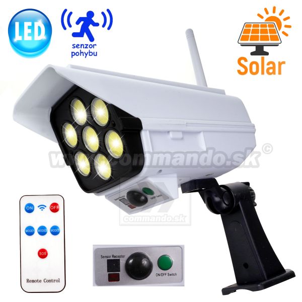 Táto realistická maketa bezpečnostnej kamery je opatrená jasnými LED diódami, s detekciou pohybu a elegantným dizajnom. Všetky tieto prvky udržia aj tých najdômyselnejších zločincov ďaleko od vášho majetku. Budú si myslieť, že je objekt strážený 24/7 a budú hľadať ľahší cieľ. Tieto imitácie sú používané v mnohých typoch podnikov, rodinných domov, chát, chalúp alebo parkovísk, múzeí, realitných kancelárií, predajcov automobilov, bytov, apod. Vďaka kvalitnému spracovaniu ponúka stupeň krytia pred vodou IP66 a vydrží všetky druhy nepriaznivého počasia. S nastaviteľnou hlavou môžete pohybovať podľa potreby. Svetlo funguje na princípe solárneho napájania, ktoré vám výrazne usporí energiu aj peniaze. Disponuje tiež tromi režimami svietenia: 1. Režim slabého svetla v noci, pokiaľ detekuje pohyb, 2. Blikajúce červené svetlo a 3. nepretržité svietenie. Všetko si môžete meniť pomocou diaľkového ovládania, ktoré nájdete v balení.