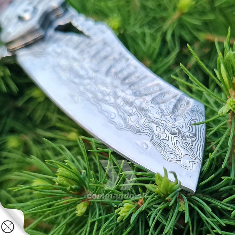 Pravá damascénska oceľ je známa svojou veľkou krásou, neuveriteľnou silou a schopnosťou udržať ostré hrany. Vzorka sa vytvára z postupného prekladania a kovania dvoch, alebo viacerých rôznych druhov ocele dohromady. Vďaka tomu je čepeľ silná, avšak flexibilná. Používame naše ruky, aby sme vytvorili veci, ktoré budú žiť a mohli rozprávať svoj príbeh. Každá vec, ktorú vytvárame, sa rodí z energie, lásky a starostlivosti remeselníkov. Damascénska oceľ je známa nielen pre tento intenzívny proces a krásny dizajn, ale aj pre svoju bohatú históriu, ktorá ju obklopuje. Týmto sa z Vášho noža stáva oveľa viac. Je to jedinečné, originálne a nezameniteľné umelecké dielo.