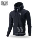 Klasická mikina na zips, s dvomi prednými veľkými vreckami a kapucňou. Mikina je so stojáčikom takže zips sa dá zapnúť až vysoko pri krku. Plastový zips s kovovým bežcom, je mohutný čo vytvára dobrý efekt a zaručuje spoľahlivé zapínanie. Lem mikiny a rukávy sú zakončené elastickým lemom, čo je výhoda pre pohodlné nosenie. Na ľavom rukáve malý štítok s logom značky. Na zadnej strane je grafika štítu a veľký nápis DOBERMAN’S Dominus Vitae Necisque. Na ľavej strane hrudi je vytlačený malý znak s runovým znakom.