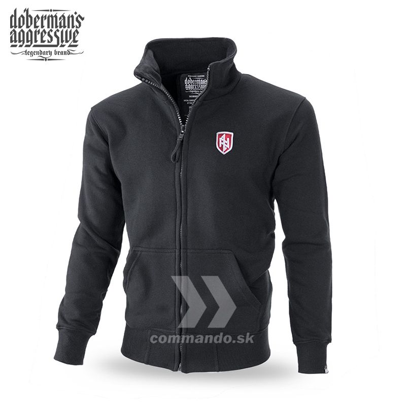 Klasická mikina na zips, s dvomi prednými veľkými vreckami a stojáčikom takže zips sa dá zapnúť až vysoko pri krku. Plastový zips s kovovým bežcom, je mohutný čo vytvára dobrý efekt a zaručuje spoľahlivé zapínanie. Lem mikiny a rukávy sú zakončené elastickým lemom, čo je výhoda pre pohodlné nosenie. Mikina má na chrbte čiernu vyšívanú 3D nášivku „DIVISION Doberman’s Offensive“, vďaka čomu pôsobí mikina veľmi efektne. Vpredu na hrudi je malá nášivka v tvare štítu zobrazujúca logo, tiež vyrobené v 3D.