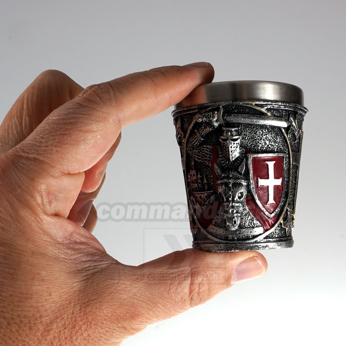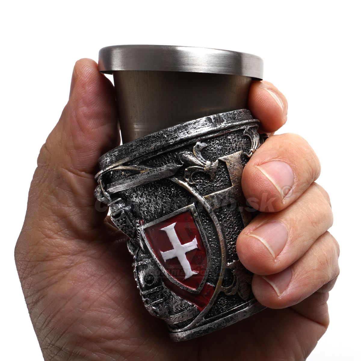 Efektne, originálne a funkčné poldecáky s nerezovým vnútrom -Templar Knight Crussader - rytier templárskeho rádu  zdobiaci pohárik z dvoch strán v 3D vyobrazení.