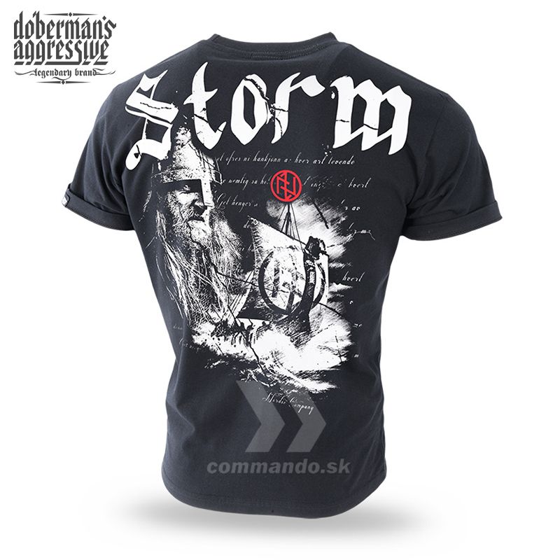 Model vyrobený zo 100% vysoko kvalitnej bavlny. Červené logo na boku. Na zadnej strane je veľká grafika, takmer po celej ploche, tričko zobrazujúce vikinga a drakkara na mori. Nad ním je nápis „Búrka“ v gotickom štýle. Na ľavej strane hrudi je malý okrúhly štít s runovými znakmi.