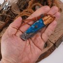 Ručná výroba vreckového nožika s príťažlivým dizajnom s damaškovou oceľou so 73 vrstvami. Materiál rúčky z kombinácie pravého koreňového dreva a živice. Ozdobné putko na bodke je z pravej kože s kovovým detailom.