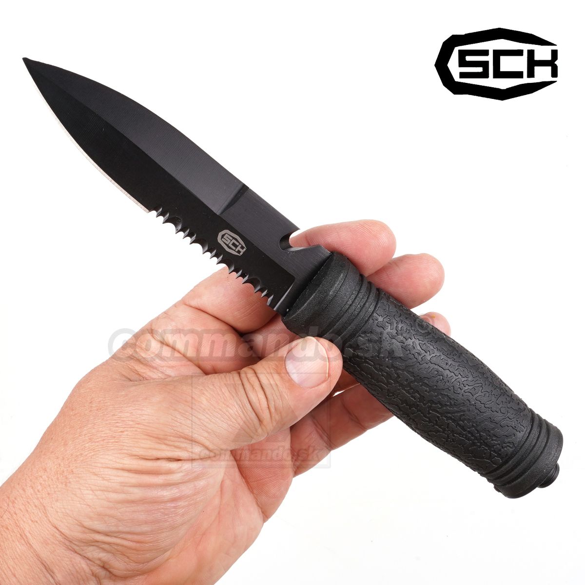 Columbia SCK nôž CW-823-4 s pevnou čiernou čepeľou so zubkovaným ostrím.