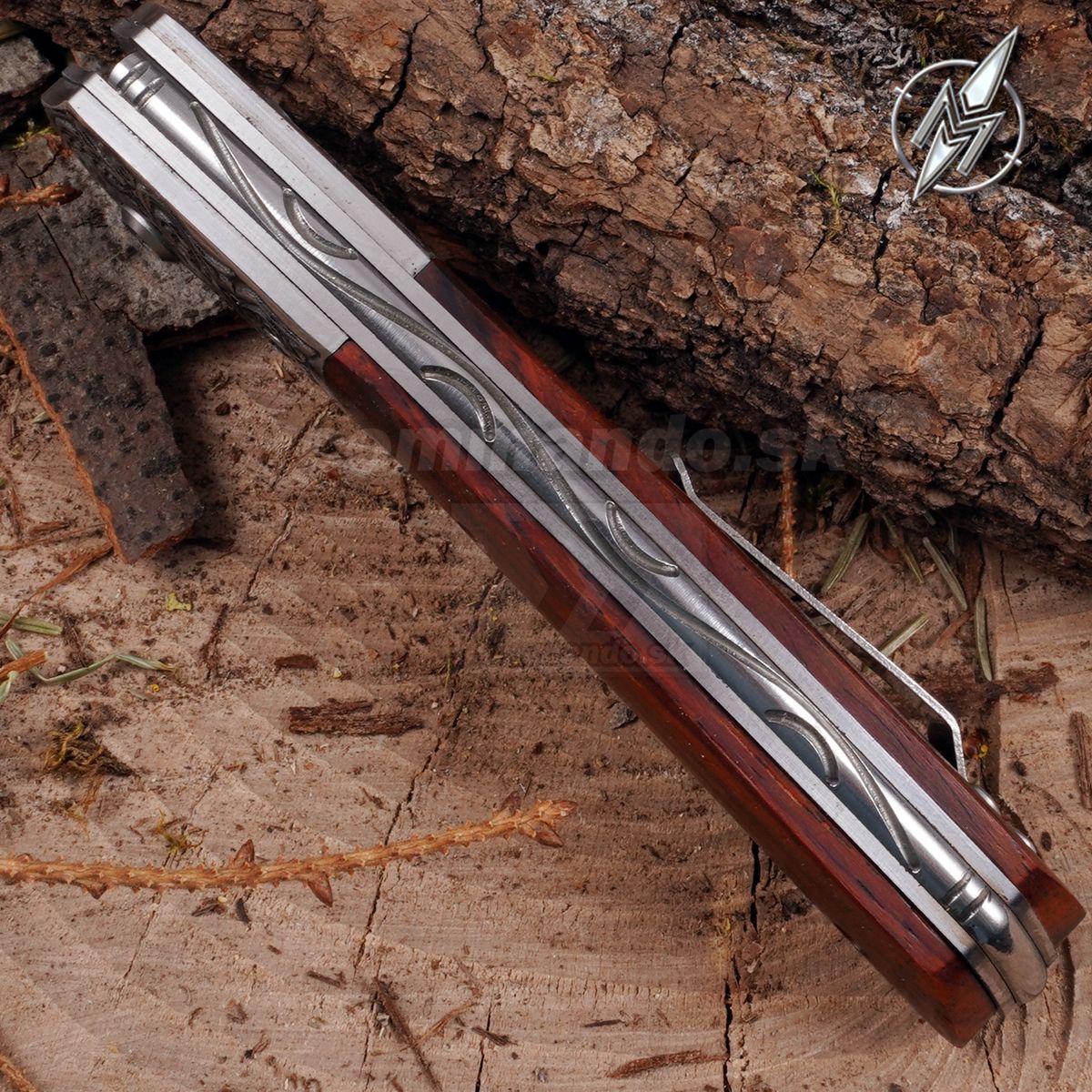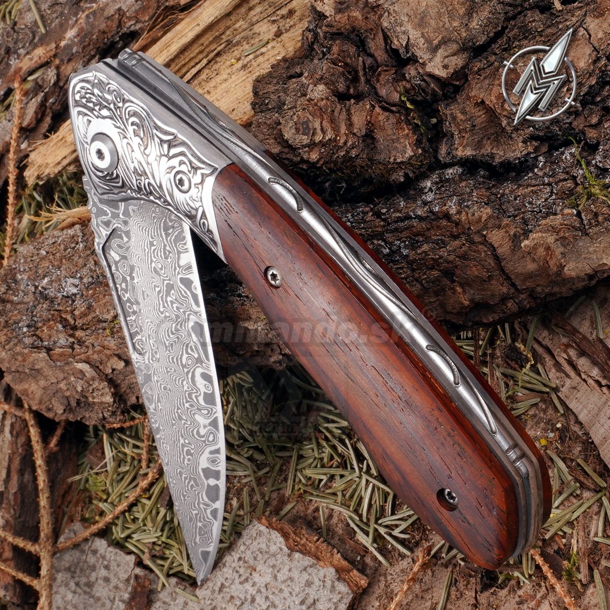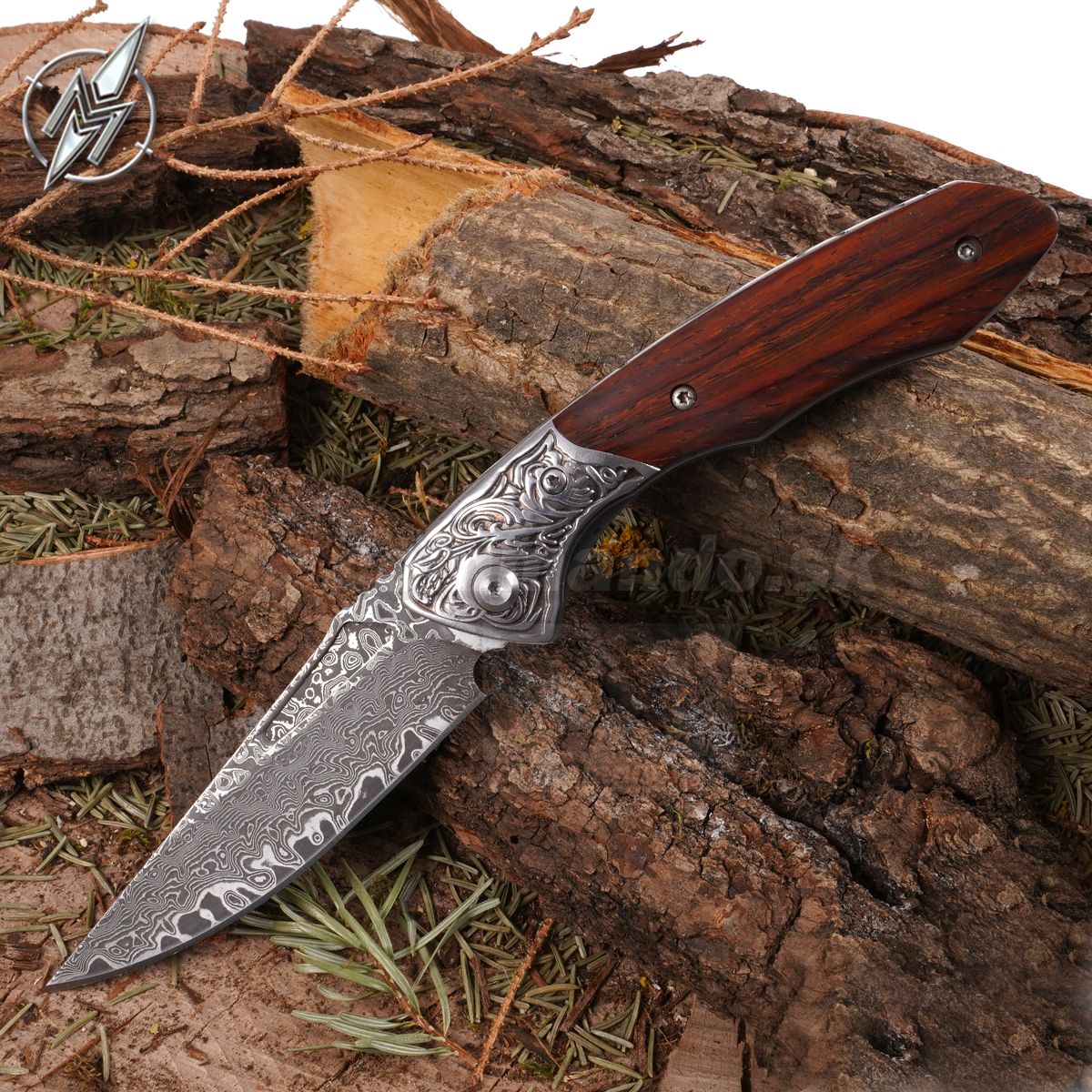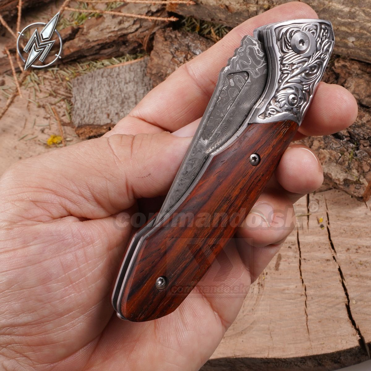 Ručná výroba, efektný dizajn a damašková oceľ so 73 prekladanými vrstvami. Materiál rúčky je z pravého dreva. Z jednej strany rúčky je kovový klip pripevnený s dvomi skrutkami.