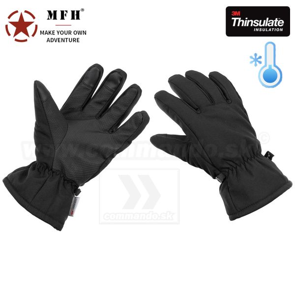 Zateplené rukavice Softshell 3M Thinsulate™ s flisovou podšívkou čierne MFH