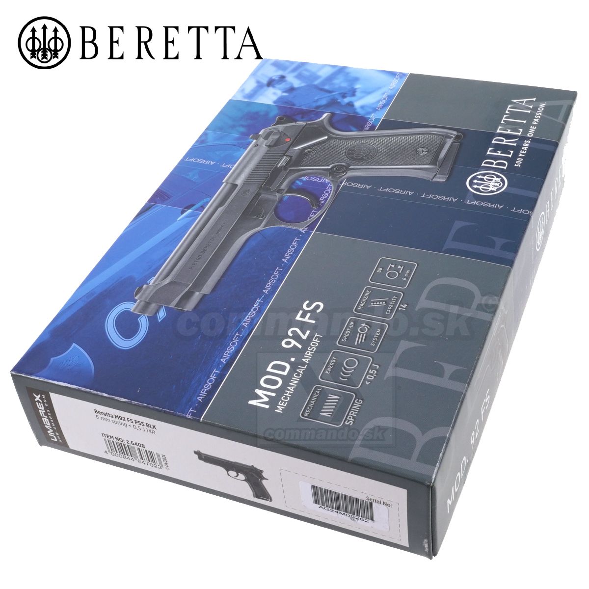 Balenie obsahuje Berettu M92 FS PSS, zásobník a malý balíček BBčiek.