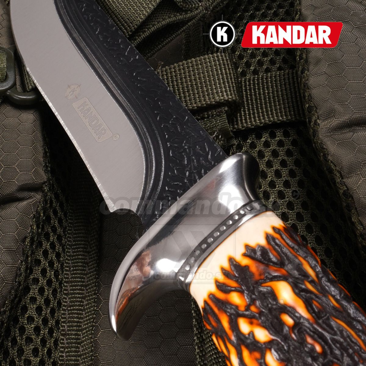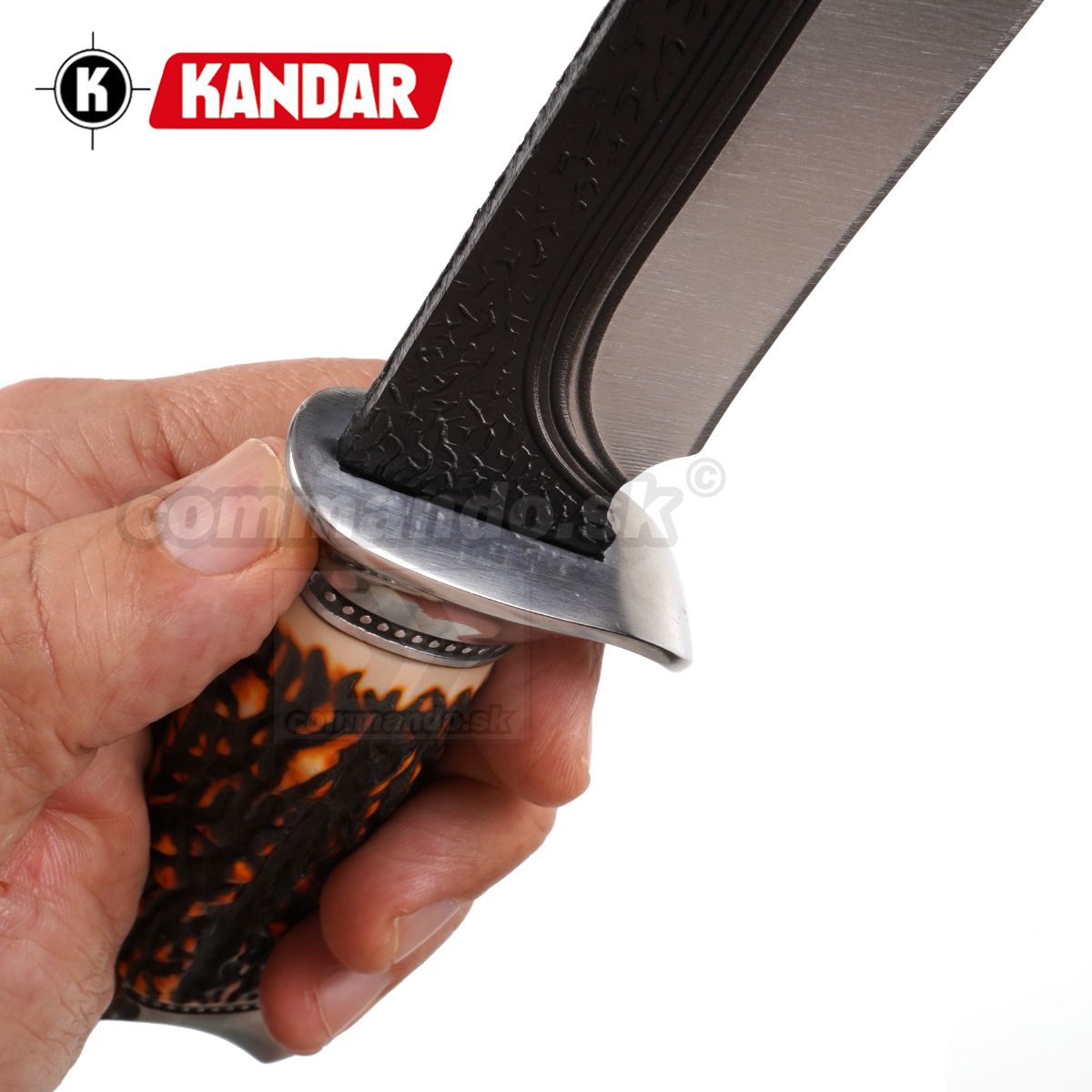 Precízne vyrobený lovecký nôž je efektívnym nástrojom pre prácu. Elegantný dizajn osloví každého poľovníka, turistu, rybára a všetkých fanúšikov outdoorových dobrodružstiev. Lovecký nôž perfektne padne do ruky, vďaka čomu je praktický a mimoriadne pohodlný pri vykonávaní rôznych druhov prác. Čepeľ s rovným chrbtovým profilom je vyrobená z kvalitnej nerezovej ocele 420. Čepeľ má navyše estetický profil s černením, táto kombinácia dodáva veľmi štýlový a originálny vzhľad. Ergonomicky profilovaná rukoväť je vyrobená z elegantnej a veľmi atraktívnej imitácie jelenieho parožia. Nôž je vybavený kovovou, klasicky predĺženou záštitou, ktorá účinne chráni ruku pred skĺznutím smerom k reznej hrane. Súprava obsahuje čierne puzdro z cordury, ktorý je možné pripevniť na opasok nohavíc. Lovecký nôž Kandar Adventure je najlepší a jeden z najkrajších nožov za prijateľnú cenu.