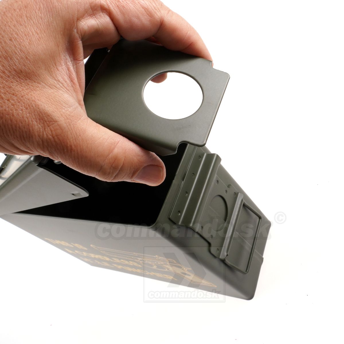 Objavte originálny prenosný kovový box pôvodne určený pre muníciu kalibru .30 s neotrelým dizajnom.