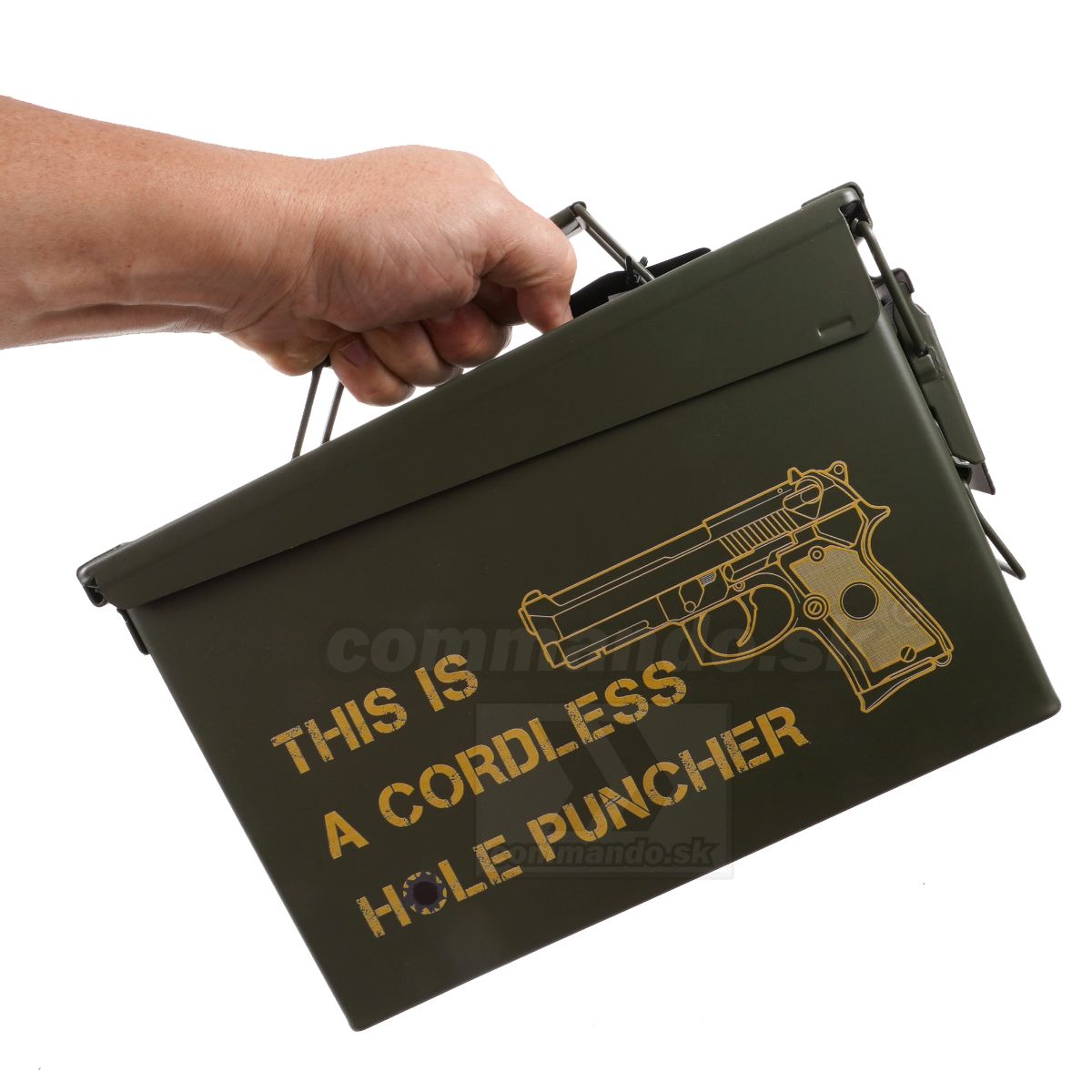 Hole Puncher, žeby voľný preklad aj ako "dierovač"? Unikátne tvarovaný vojenský box na muníciu. Ideálne na uloženie airsoftového vybavenia, streliva, rybárskeho náčinia, elektroniky, fotoaparátov a ďalšieho!