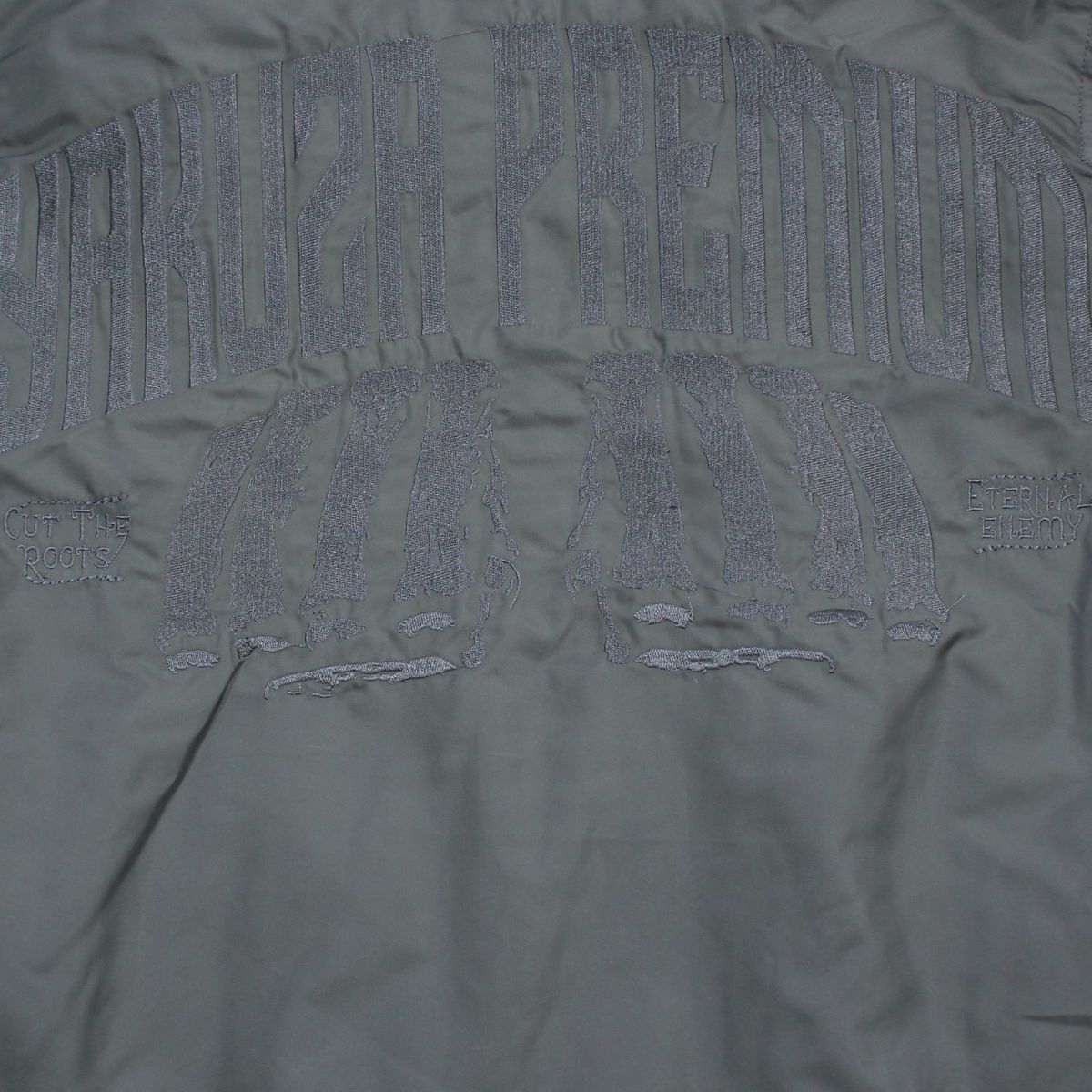 Limitovaná bomber bunda v zelenej farbe od Yakuza Premium pre mužov. Bunda vás nielen zahreje, ale aj vyzerá super štýlovo. Bunda má odopínateľnú kapucňu, nášivku na ľavej strane hrudi a 2 predné vrecká. Na zadnej strane je kombinácia vyšívaného písma a veľkej, prepracovanej výšivky. Bunda je strihaná skôr voľne s manžetami na rukávoch aj leme.