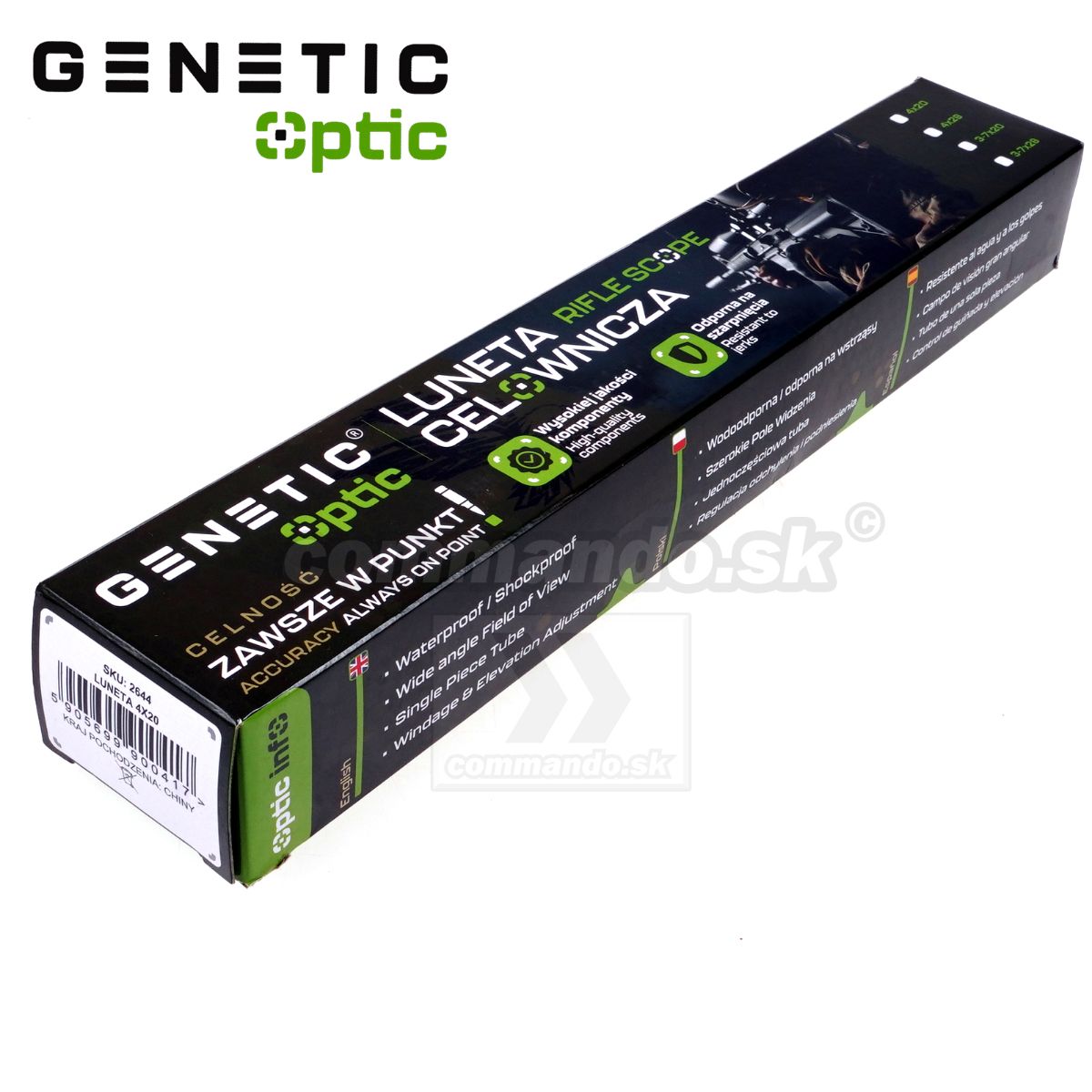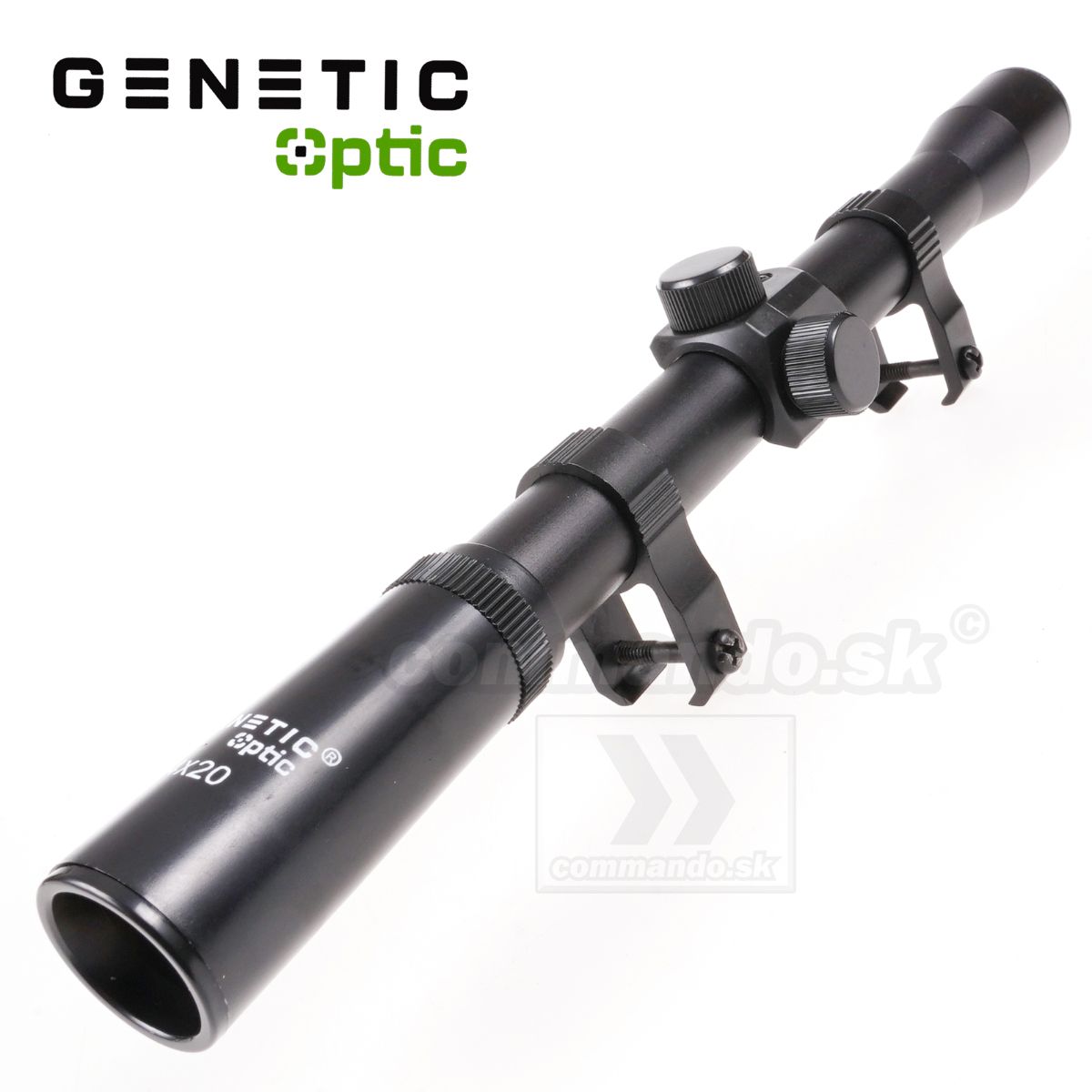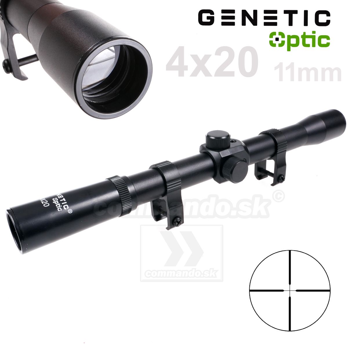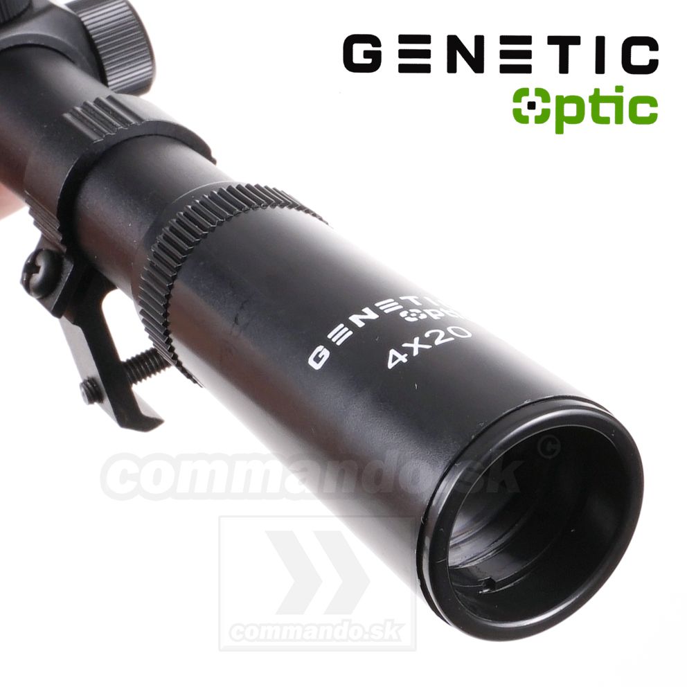 Základný puškohľad GENETIC OPTIC 4×20 s osnovou typu R4 vysokým uchytením je určený pre prvé zoznámenie sa s puškohľadom pre nenáročných. Puškohľad 4×20 je zameriavacie zariadenie, ktoré uľahčuje streľbu zo vzduchoviek na krátke vzdialenosti. Tento puškohľad má pevné 4-násobné zväčšenie a je určený pre vzduchovky s nízkym výkonom, ktoré neprekračujú úsťovú rýchlosť 250 m/s. Puškohľad je vybavený zameriavacou osnovou 30/30. Puškohľad sa vyznačuje vertikálnym a horizontálnym nastavením pomocou dvoch vežičiek zaistených krytkami. Puškohľad sa dodáva s vysokým uchytením pre 11mm lištu, ktorá bezpečne upevňuje puškohľad k vzduchovke. Vďaka priemer objektívu 20 mm sa zachováva ľahká konštrukcia.