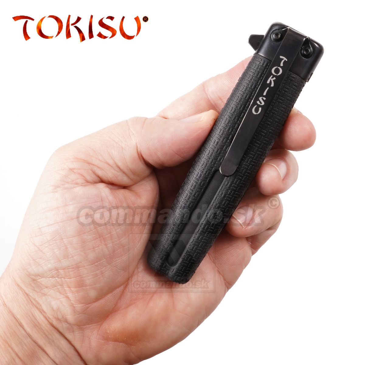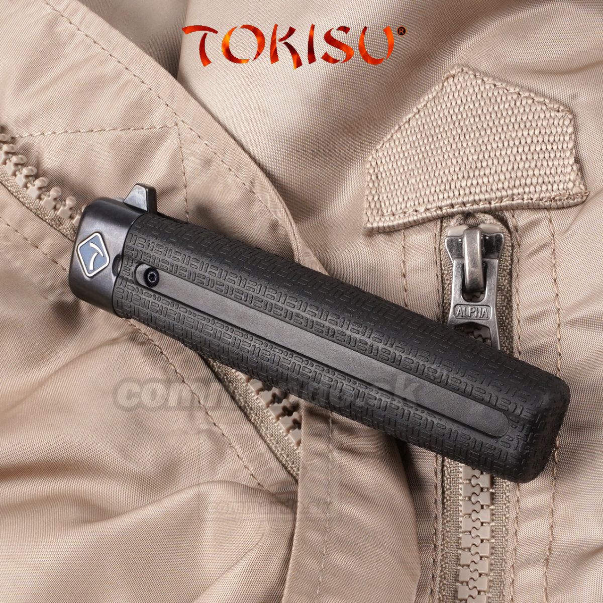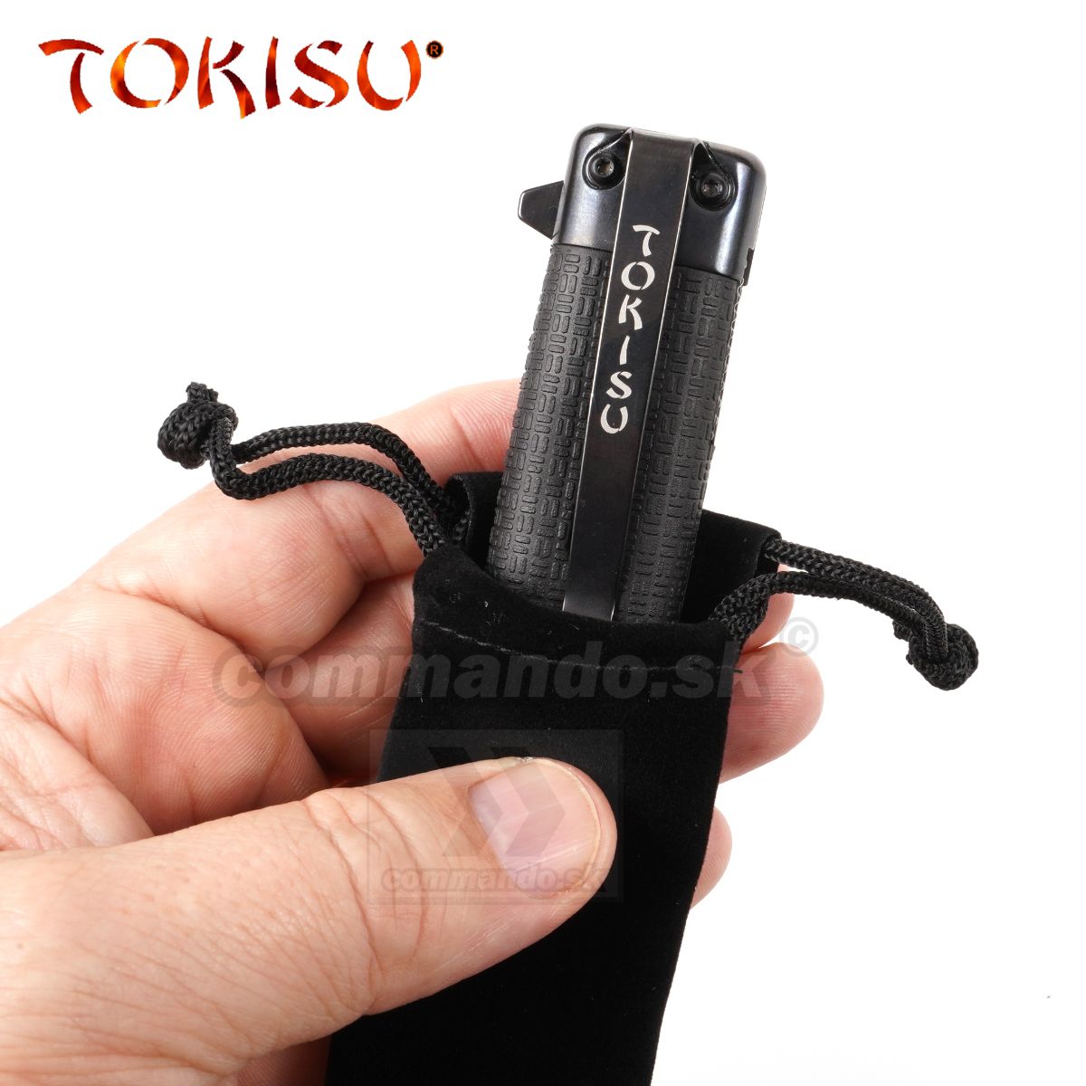 TOKISU značka, ktorá ponúka najvyššiu kvalitu v tejto cenovej kategórii. Obrábanie pomocou CNC technológie, rúčka osadená odolnou protišmykovou gumou. Otváranie a zatváranie noža uľahčujú aj dva mikro guličkové ložiská - Ball Bearing. Decentné čierne saténové puzdro je súčaťou balenia. V otvorenej polohe je nož fixovaný poistkou Liner Lock. Titanium Shiny Coated - lesklá čierna titánova povrchová úprava čepele. Klip pevne uchytený dvomi skrutkami k telu noža sa výborne hodí na denno denne nosenie vo vrecku nohavíc.