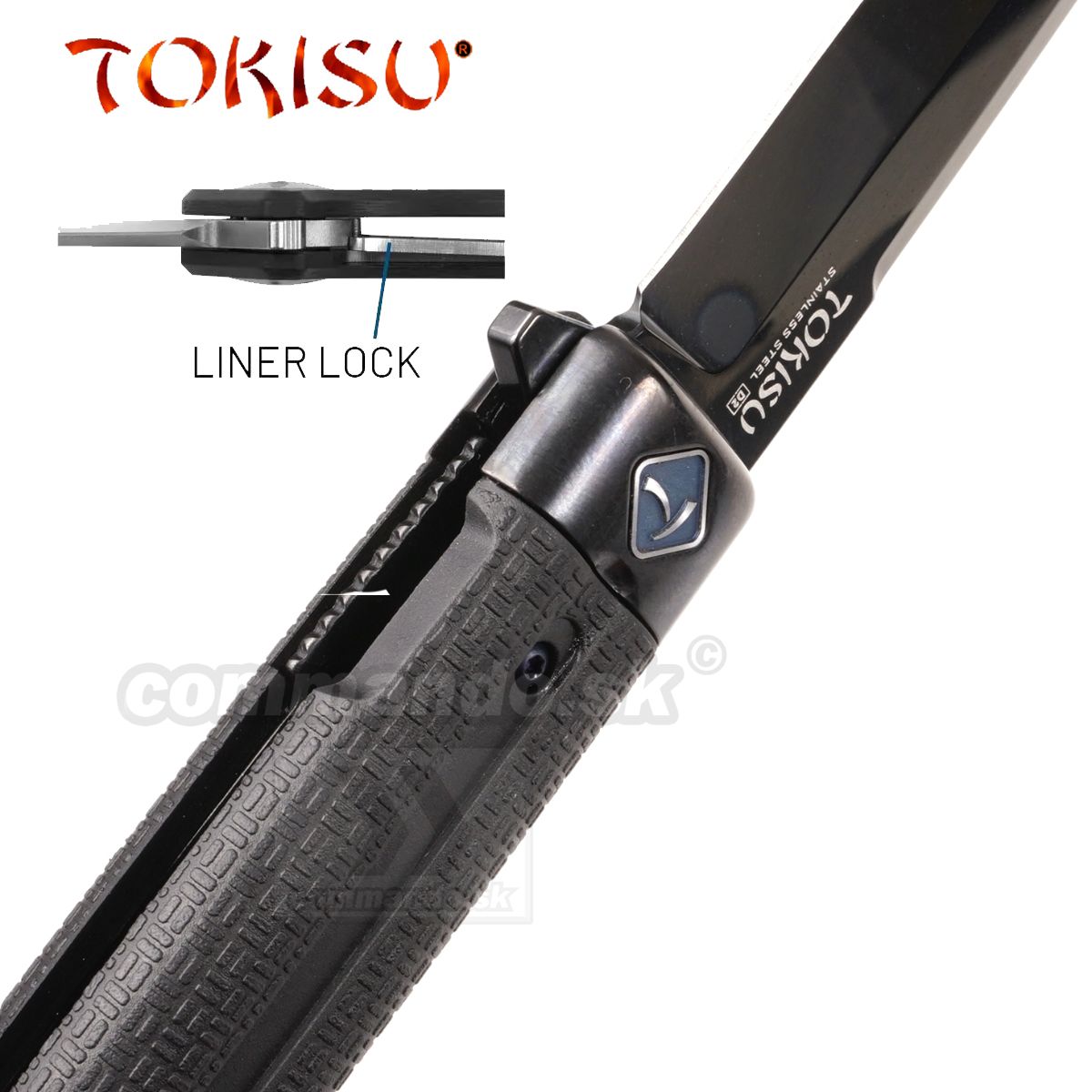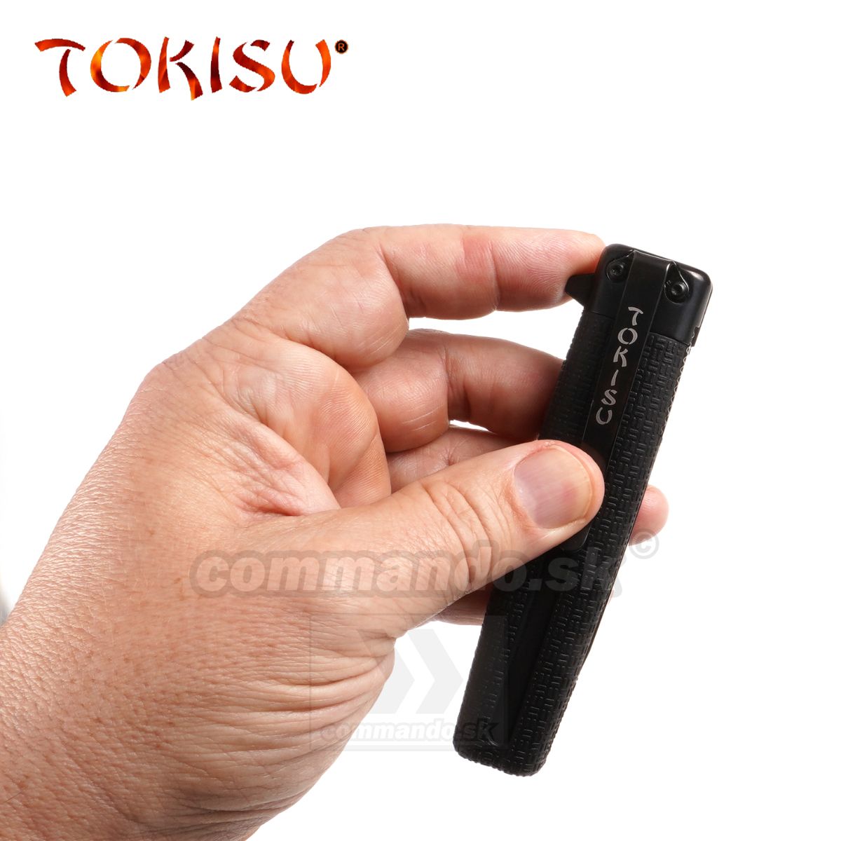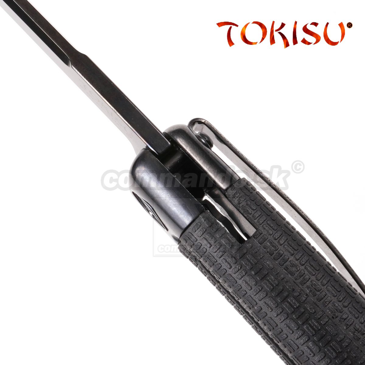 TOKISU značka, ktorá ponúka najvyššiu kvalitu v tejto cenovej kategórii. Obrábanie pomocou CNC technológie, rúčka osadená odolnou protišmykovou gumou. Otváranie a zatváranie noža uľahčujú aj dva mikro guličkové ložiská - Ball Bearing. Decentné čierne saténové puzdro je súčaťou balenia. V otvorenej polohe je nož fixovaný poistkou Liner Lock. Titanium Shiny Coated - lesklá čierna titánova povrchová úprava čepele. Klip pevne uchytený dvomi skrutkami k telu noža sa výborne hodí na denno denne nosenie vo vrecku nohavíc.