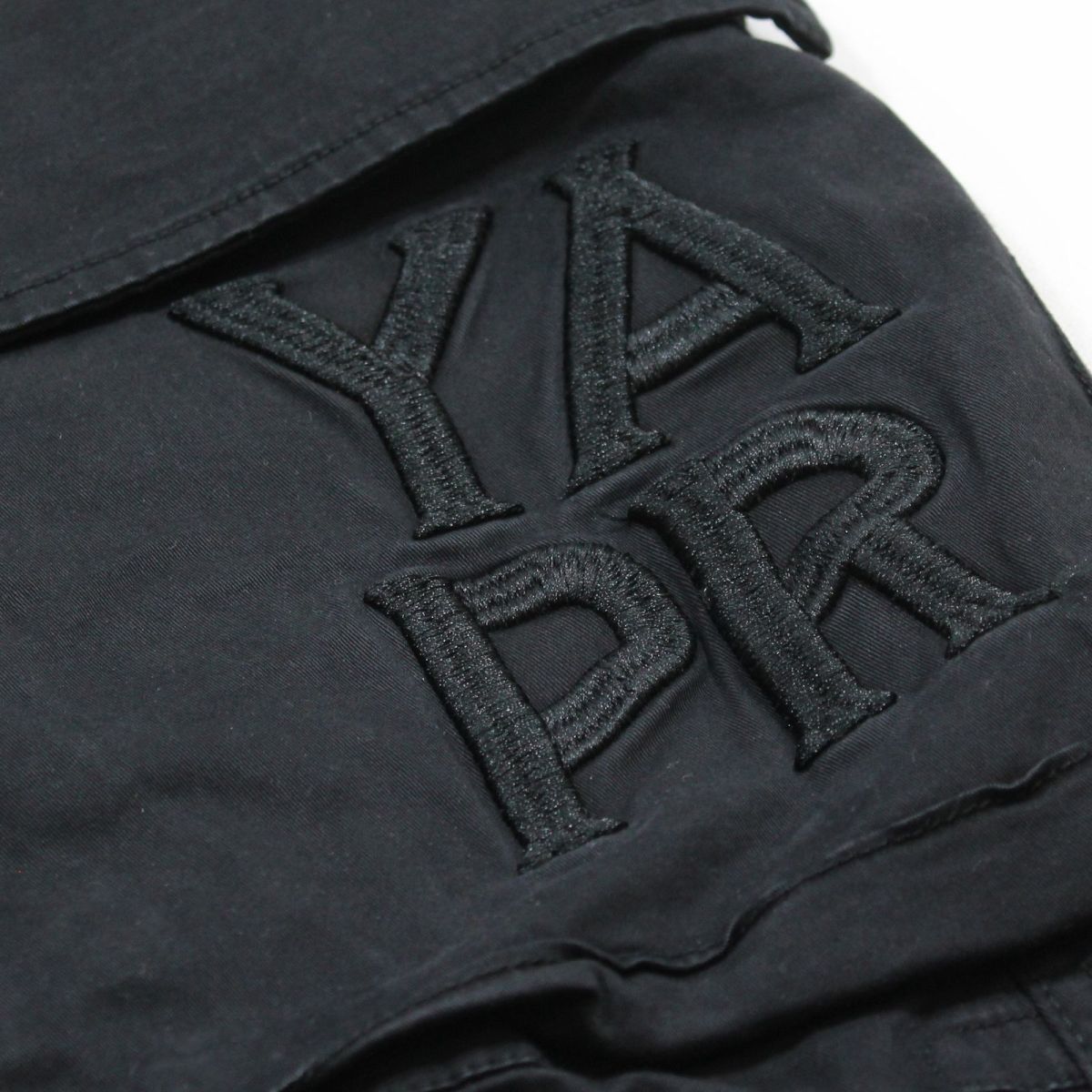 Nohavice majú na boku dve cargo vrecká aj dve horné vrecká, na ľavom je výšivka YAPR. Na zadnej strane majú dve zadné vrecká, z ktorých každé je uzatvárateľné na patentku. Zvláštnosťou týchto cargo nohavíc je ležérny zúžený strih. Sú veľmi pohodlné, s pevnými manžetami na spodku nohavíc. Provokatívne motívy a skvelá kvalita látok!