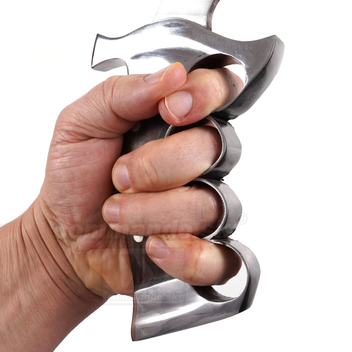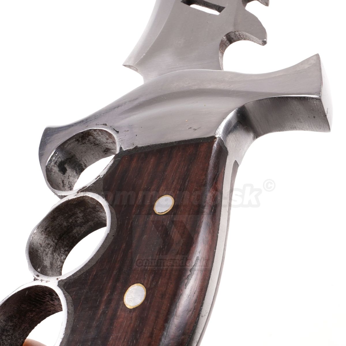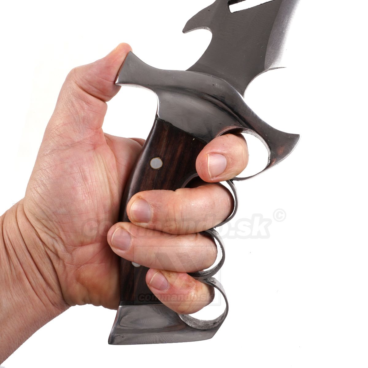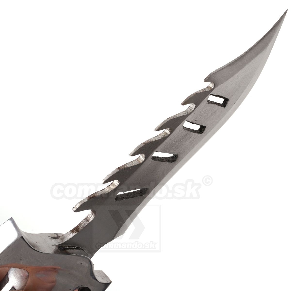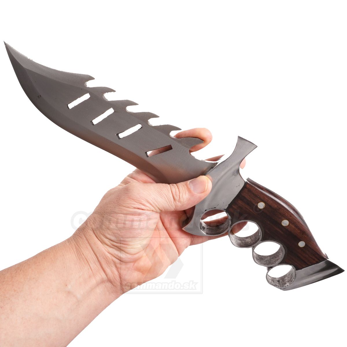 Nôž inšpirovaný akčným filmom z 80 rokov, vyrobený z čepele z kvalitnej ocele. Meria 43 cm. Ručná výroba z ocele 5160. Parciálne kalená v olejovom kúpeli. Plne funkčný nôž na každodenné používanie, avšak skôr pre fajnšmekrov.