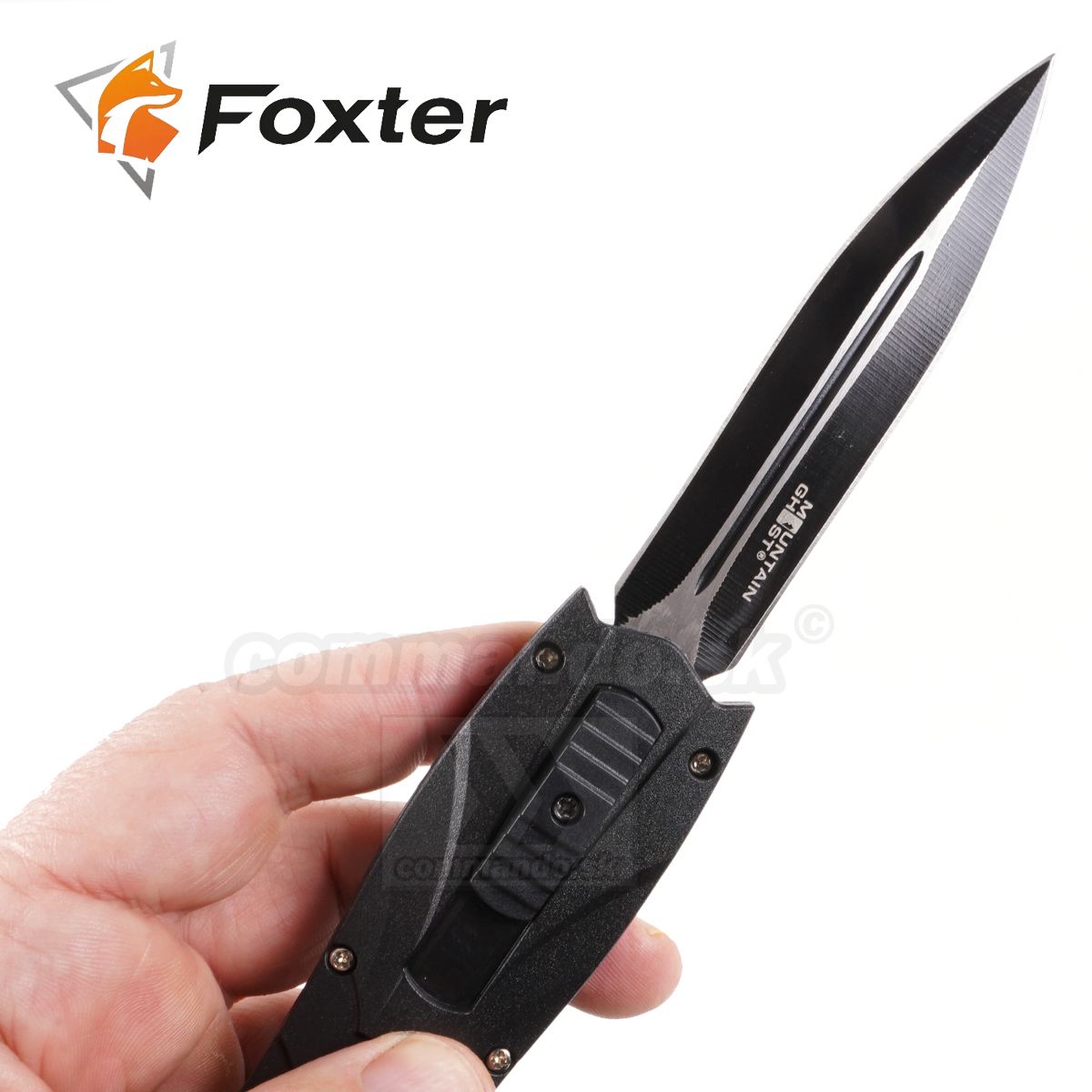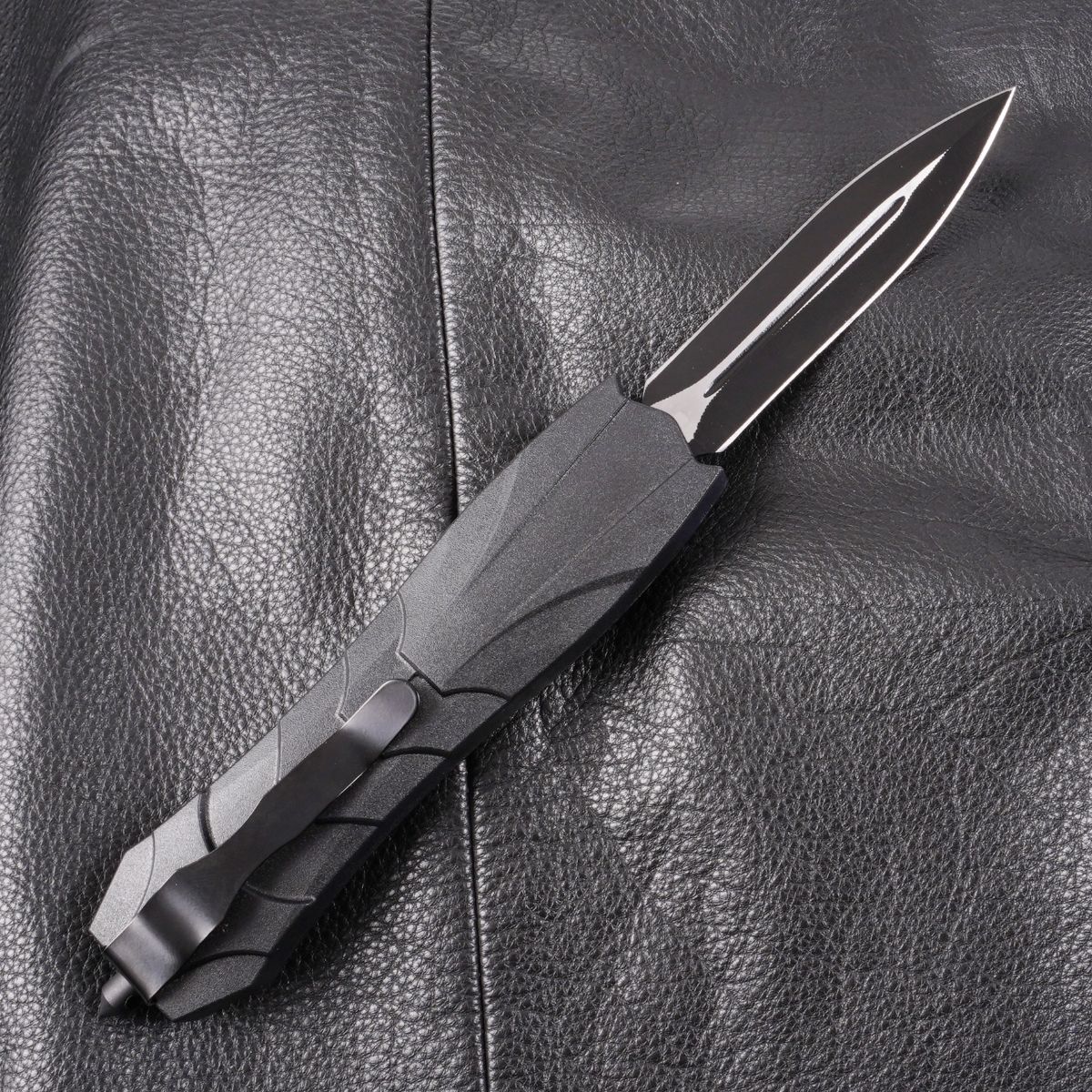 OTF-15 má obojstranne ostrú čepeľ tvaru dýky. Štýlové čierne prevedenie mu dodáva moderný a elegantný vzhľad.