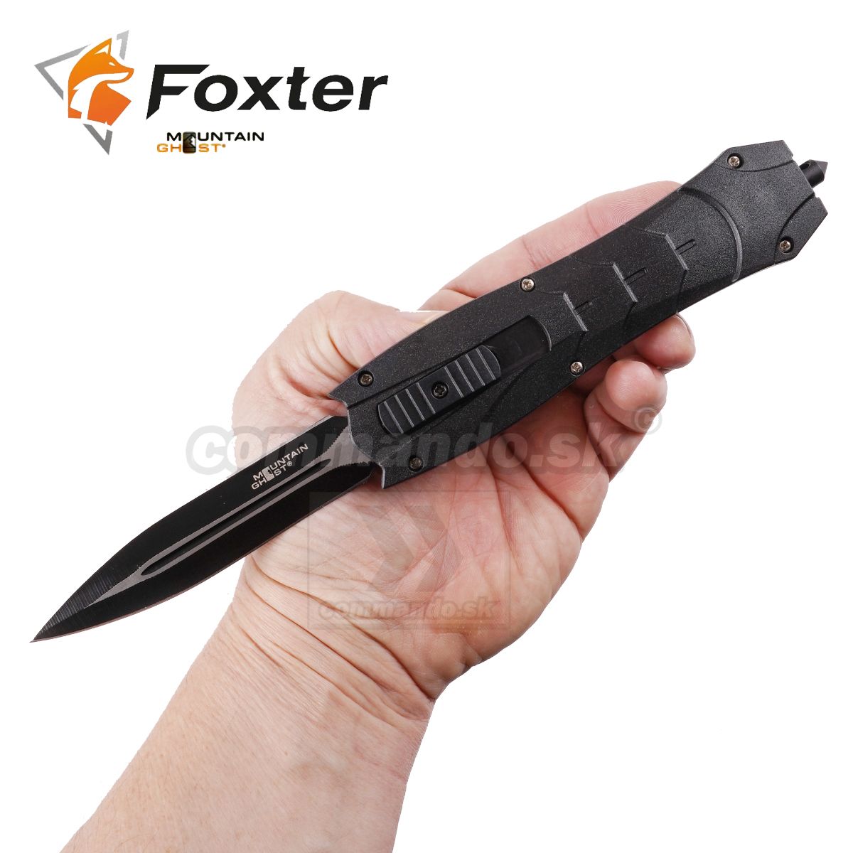 Automatický zatvárací nôž vyskakovačka Mountain Ghost - OTF - out the front s rozbíjačom skla