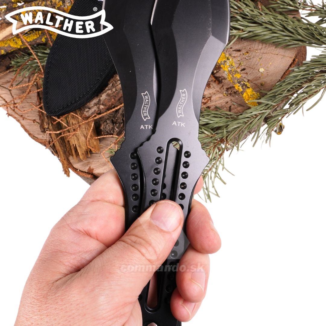 Masívne vrhacie nože Walther Advanced Throwing Knives sú špičkové vrhacie nože, ktoré zaujmú svojim pôsobivým vzhľadom a funkčnosťou. Súprava vrhacích nožov Walther ATK sa skladá z dvoch vrhacích nožov v robustnom nylonovom kombinovanom puzdre. Presvedčivá štartovacia sada pre fascinujúci šport. K nám do predajní chodí niekoľko zákazníkov, ktorí sa aktívne zaoberajú touto činnosťou. Podľa ich názoru a ich praxe, sú tieto nože Walther ATK vynikajúce. Výborne vyvážené, ideálne na športové hádzanie.