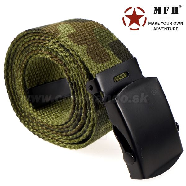 Opasok v populárnej maskáčovej farbe flecktarn** na každodenné nosenie s kovovou prackou. Šírka opasku je len 3cm, čiže je použiteľný aj do nohavíc s úzskymi putkami napr. detské nohavice. Výhoda týchto opaskov je, že zapínanie je plynulé, nie je závisle na dierkovaní.