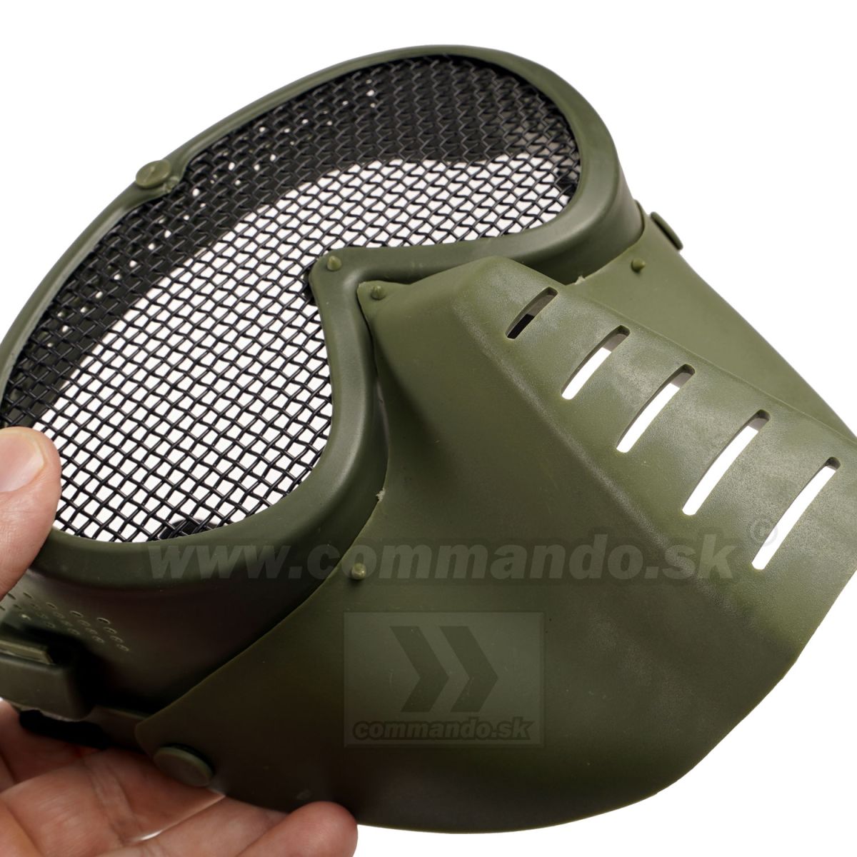 Najbežnejšia a cenovo najvýhodnejšia ochranna maska pre airsoftových začiatočníkov. Osvedčená a účinná ochrana. Okuliarová časť sa dá odobrať osobitne. Veľkosť masky pasuje pre drvivú väčšinu tvári. Maska sa upína na hlavu pomocou gumového popruhu. Masku sme podrobili testovaniu viď. priložené video na YouTube.
