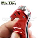 Zatvárací nôž od spoločnosti STURM Mil-Tec Germany. Ergonomický tvar rukoväte zabezpečuje pevnosť noža v ruke. Povrchová úprava v červenej farbe. Hliníkova rukoväť obsahuje v zadjen časti aj malú čepeľ na prerezávanie bezpečnostných pásov a hrot na rozbíjanie skla. Samotná čepeľ noža je vyrobená z kvalitnej nerezovej ocele 440ss. Obsahuje zúbkovanú časť o dĺžke 2,8 cm s ktorou prerežete tvrdšie materiály (látka, plast, tenké konáre, ľad, atď.) Nôž je po otvorení (jednou rukou, otváranie blade flip pomocou palca a dohodením) istený poistkou liner lock. Kovová spona na rukoväti umožňuje pripevnenie na opasok, vrecko nohavíc, batoh, tašku atď. Nôž je dodávaný bez puzdra.