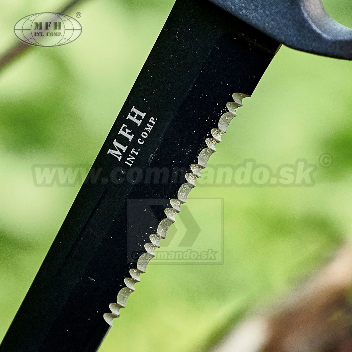 Na 17 cm dlhú tanto čepeľ, ktorá prechádza celým nožom, bola použitá oceľ typu 440. Spodná časť čepele je rozdelená na hladké ostrie a oblé pílkove zuby, ktoré si hravo poradia s tvrdšími predmetmi ako je ľad, plasty, lano, popruhy, drevo, kosti a podobne. Protišmyková drsná plastová rúčka so záštitou proti šmyknutiu ruky na ostrie je opatrená aj očkom na prevlečenie šnúrky, ako poistné lanko proti strate, alebo na upnutie na zápästie. Materiál čepele, ktorá prechádza rúčkou, vytŕča na konci cca 3 - 4 mm čo oceníte pri potrebe niečo rozbiť.