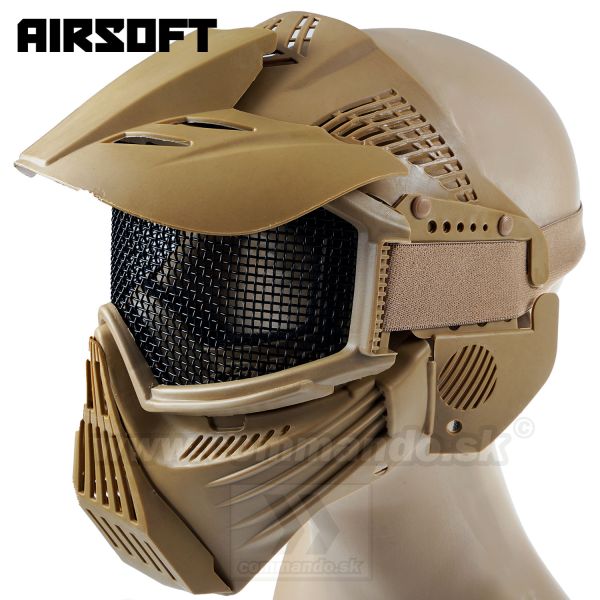 - airsoftová celotvárová maska piesková s kovovou sieťkou