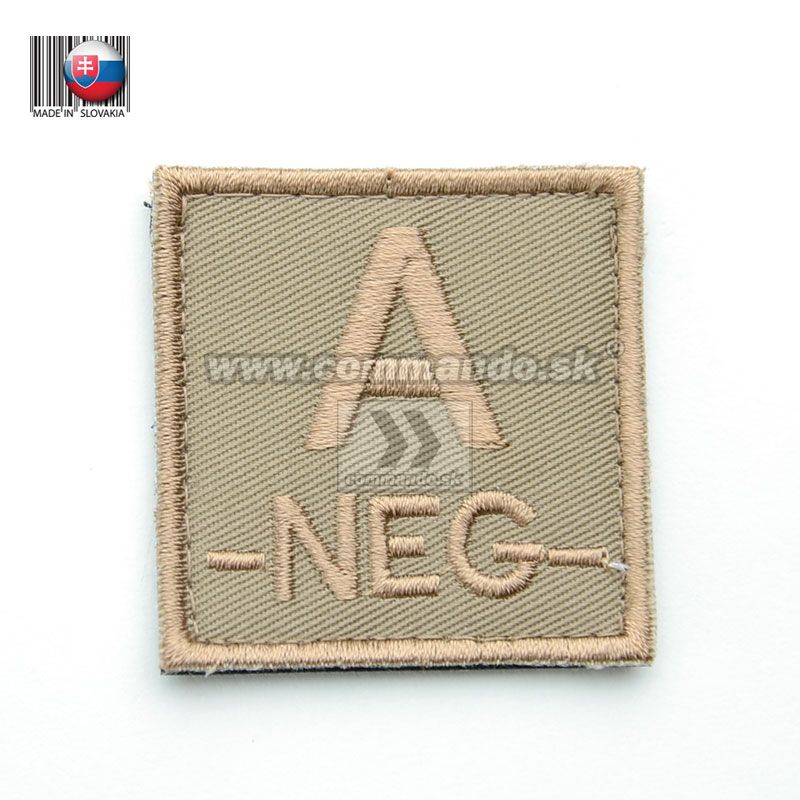 Nášivka Veľká A- Negativ Coyote Tan Krvná skupina