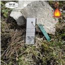 Magnéziové (horčíkové) kresadlo sa nachádza v hliníkovom puzdre so stieračom a tieto dve časti sú spojené krátkou retiazkou.