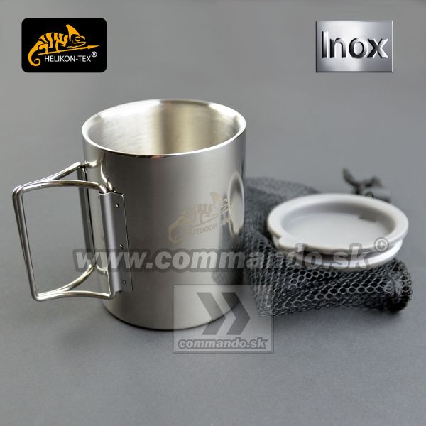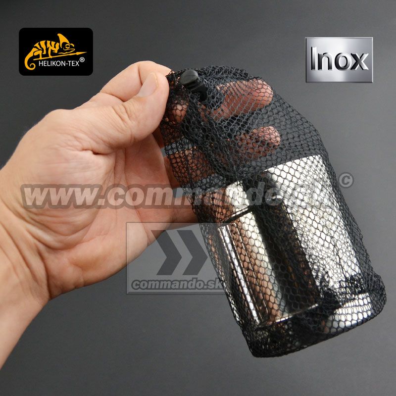 Helikon má vo svojej ponuke aj zopár zaujímavých nerezových vychytáviek. Nerezový termo pohár z "edície Helikon Outdoor Gear" s objemom 250 ml, spolu s vrchnákom a so sieťkou ako bežná potreba pre turistov. Materiál prevedenia je čistý vysokoleštený nerez t.j. Stainless Steel. V papierovej krabičke, v ktorej je zabalený hrnček, je nerezový hrnček, plastové viečko a sieťka. Rúčka pohára je skladateľná, viď. priložené foto.