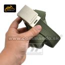 Pevný opasok Helikon Canvas Belt s ešte pevnejšou prackou. Pracka je vzhľadom jednoduchá, ničím neruší, nie je ani lesklá, ani tmavá. Má na sebe ošúchanú patinu s jemným logom Helikon Tex. Výhoda tohto typu opasku je hlavne jeho variabilná dĺžka s aretáciou pomocou silnej kovovej spony. Vianočné alebo veľkonočné nabratie váhy a následné zhadzovanie nemá vplyv na počet vyrazených dierok.