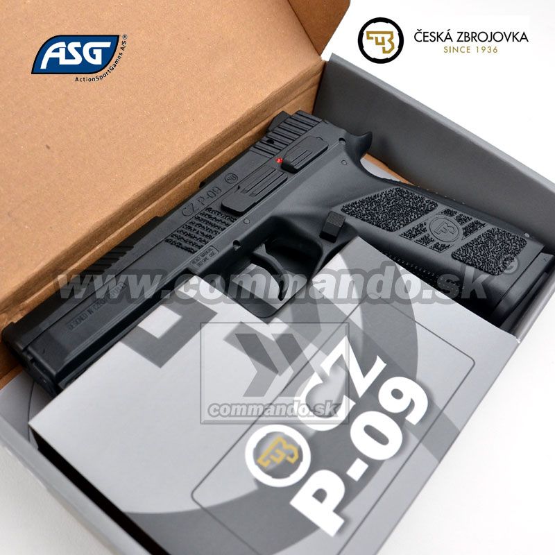 Tento model ASG.18116 CZ P-09 Gas má plastový záver a papierovú krabicu, model ASG.17657 CZ P-09 Gas má kovový záver a prenosný kufrík. Kvôli tomu je tam cenový rozdiel.