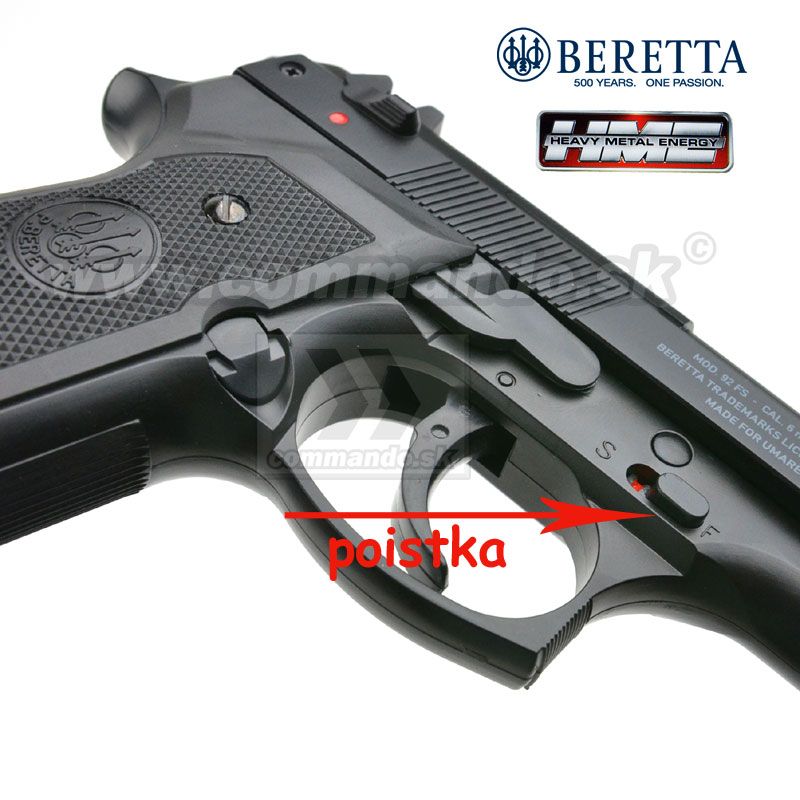 Manuálna replika Beretty Mod. 92 FS vo vyhotovení tsv. HME "Heavy Metal Energy" znamená vrchol v krátkych manuálnych pištoliach. Vysoká váha, ťažký kovový záver, odolný polymér a hodnoverný pocit z držania tejto zbrane. Na replike sú všetky detaily zobrazené podľa originálu, vzhľadom na to že firma Umarex vlastní licenciu na značku Beretta. Ide o veľmi vydarenú manuálnu repliku pre začiatočníkov, ale aj pre pokročilých užívateľov.