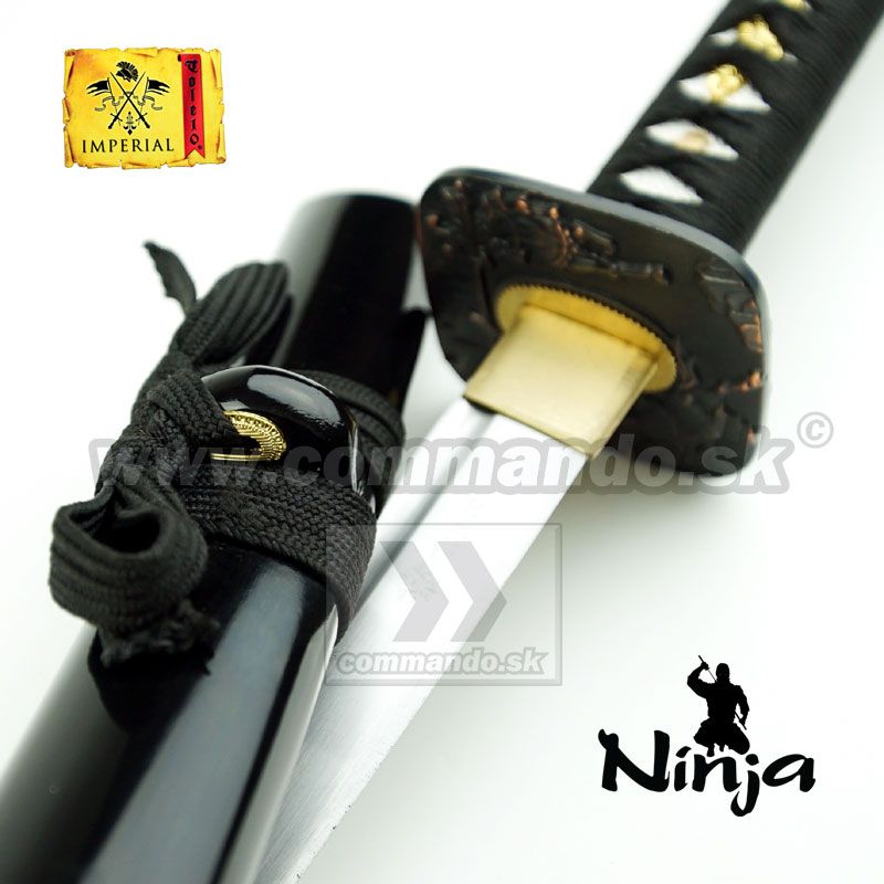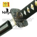 Ninja Katana - funkčná, maximálne ostrá, replika japonského meča s lesklou čiernou povrchovou úpravou. Drevený prepravný box a v ňom plátený obal, čistiaca sada a náhradná výmenná tsuba (záštita). Jedna tsuba je štvorcového typu a druhá je oválneho typu. Ich vzor sa môže líšiť od vyfotografovaných, vždy je iný motív. Meč je ťažký s hmotnosťou takmer 1,5kg svedčí o kvalite. Čepeľ je plne funkčná a poriadne ostrá. Výborná kópia japonského meča. Hlavní hrdinovia z filmu Kill Bill by asi chceli niečo "ostrejšie", avšak aj tento hrdlorez je prekvapujúco ostrý. Čepeľ je z uhlíkovej ocele s maximálnou tvrdosťou.