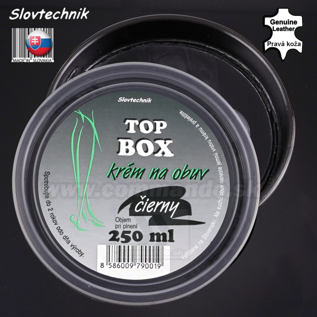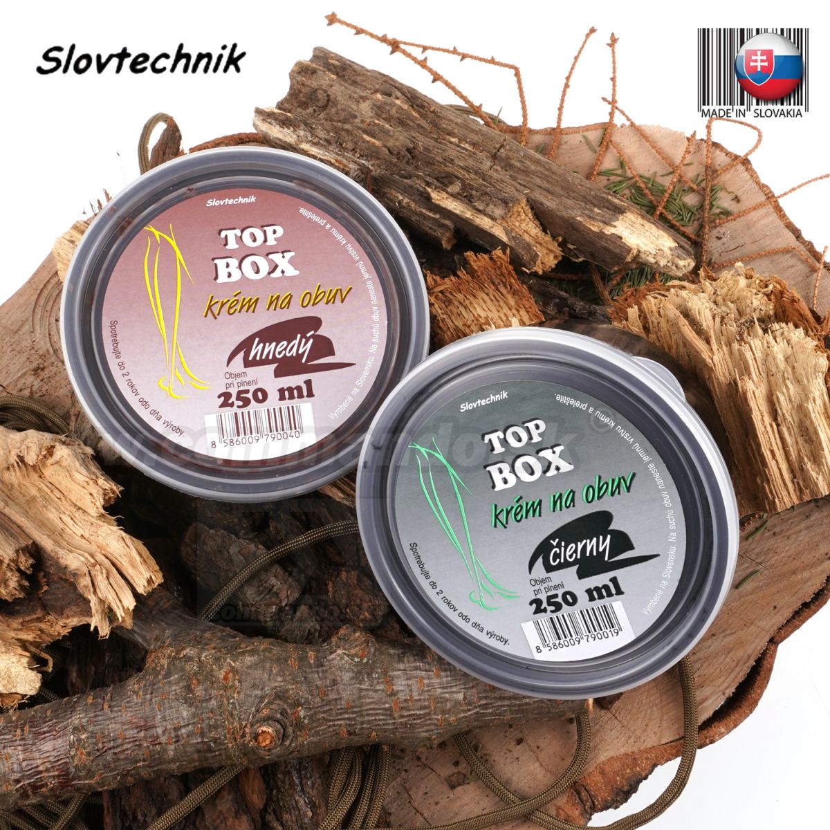 Pravý tradičný slovenský výrobok vyrábaný pôvodnou receptúrou už vyše 25 rokov. Slovenský čierny krém Top Box na obuv.