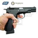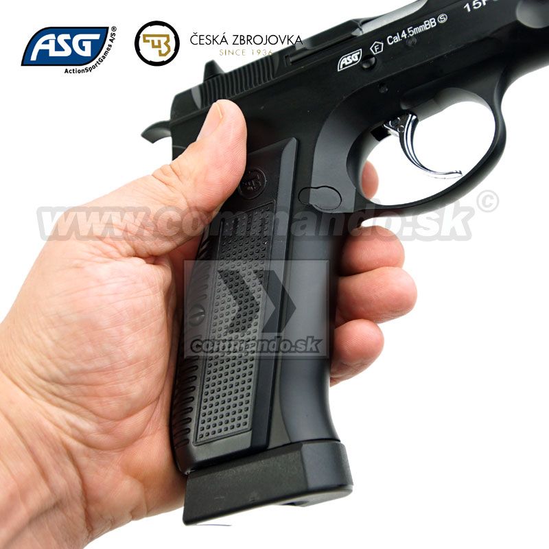 Vždy sú zbrane, ktoré vznikajú ako klony, alebo ako celkom nové s novou koncepciou. Česká klasika 75-ka vznikla v 70 rokoch a dodnes sa úspešne vyrába a klonuje zároveň. Skvelý kusok je vo vzduchovkovej verzii z Dánska od ASGčka. Perfektne prepracovaná replika. Každý detail je dotiahnutý do konca, viď. priložené foto. Pištoľ je celokovová, aj označenia sú podobné v porovnaní s jeho originálnym bratom z česka. Niektorí fajnšmekri by povedali "chuťovečka". Zbraň frčí na stlačený plyn CO2 bombičky. Jedna bombička vydrží cca. 70 - 80 výstrelov vždy závisi od vonkajšej teploty. Čím nižšia tým menej výstrelov. Zbraň sa tankuje strelivom " oceľovými guličkami " tzv. Steel BB.