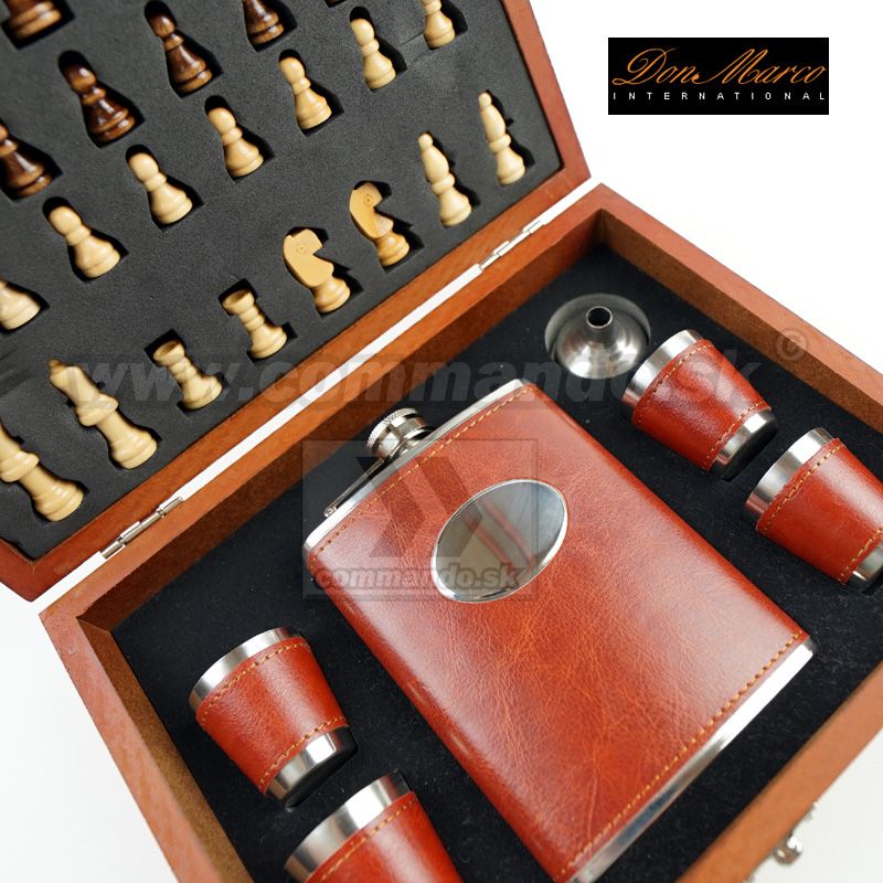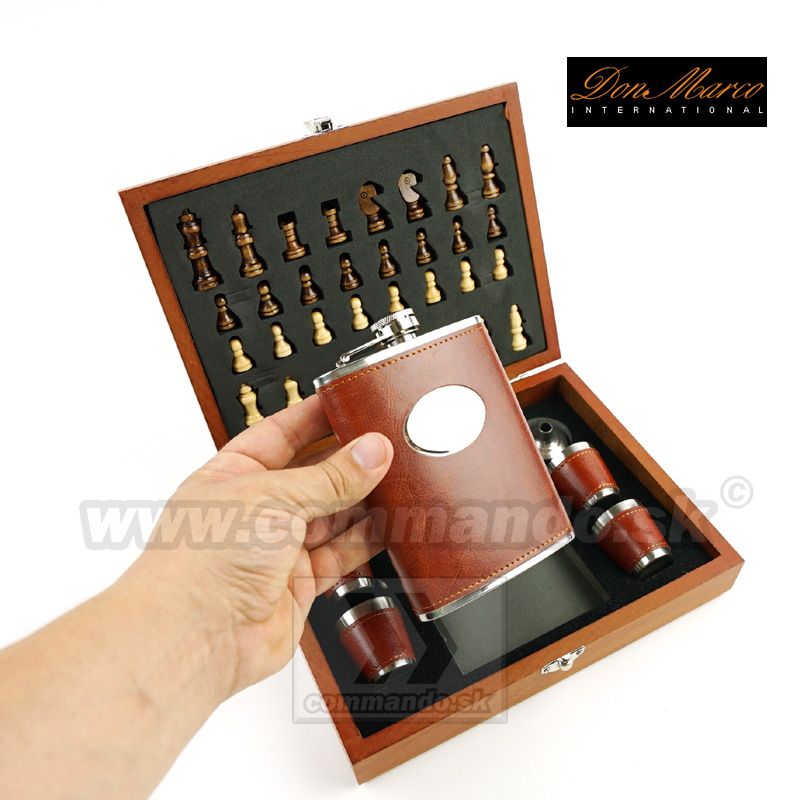 Darčeková súprava Don Marco Gentelo Šach Mat 6v1 - komplet súprava so šachovými figúrkami v drevenej krabičke. Súprava typicky chlapská záležitosť, inteligencia a (R)um v jednom!!